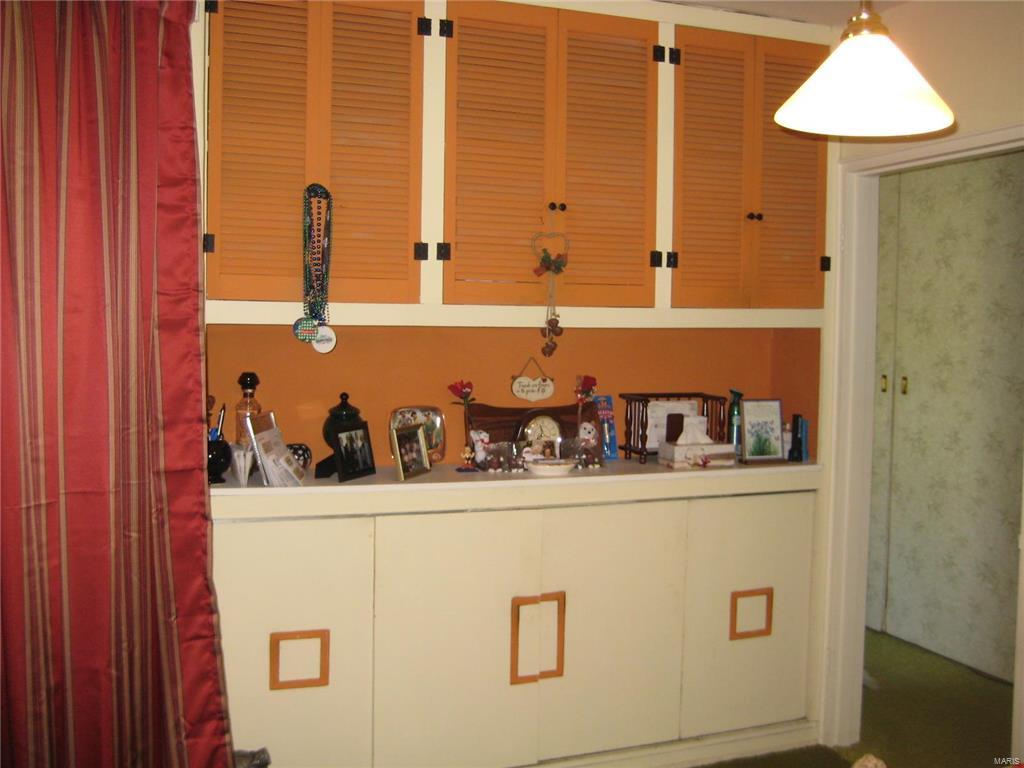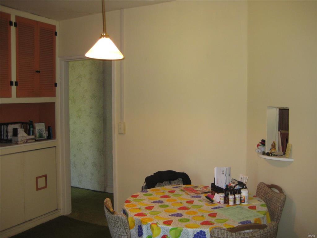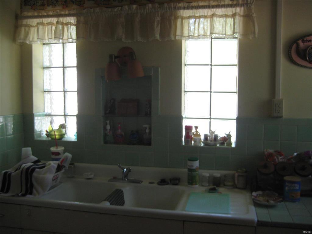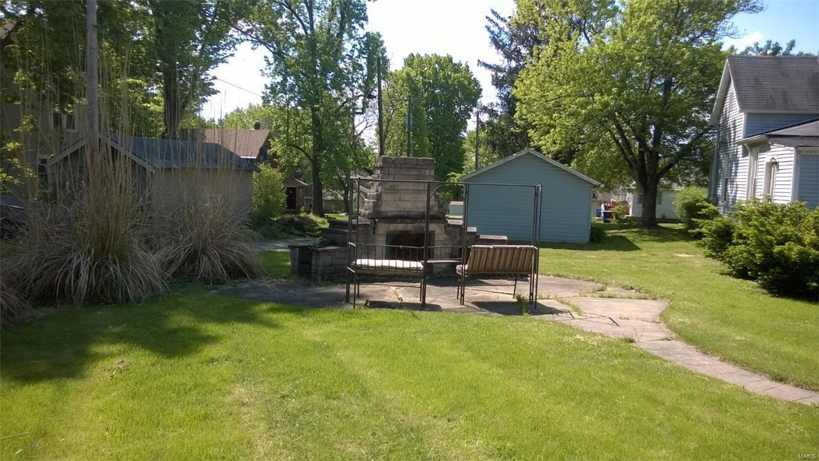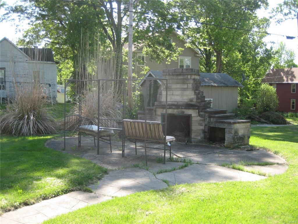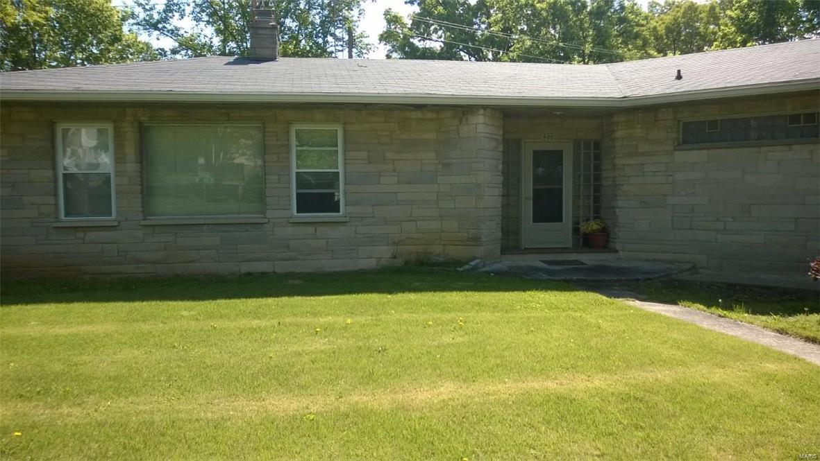 Unique stone home on large corner lot near Greenville College. Property is currently used as a duplex but can easily be converted to a single family residence with the removal of one door. East side of duplex has large living area that opens to a dining/kitchen combo. Large windows and a floor to ceiling stone fireplace. A large master suite with corner tub/shower complete the main floor. The basement features a family room, laundry area and large storage area as well as a one car garage. West side has two bedrooms with a jack-n-jill bathroom between them as well as a living, kitchen and separate dining. One car garage in the basement as well with access from the outside only. West side is very dated but solidly built and ready to be updated. East side has been updated. House sits on three lots and has extra parking areas, one carport space and an outdoor stone grill/fireplace with patio.