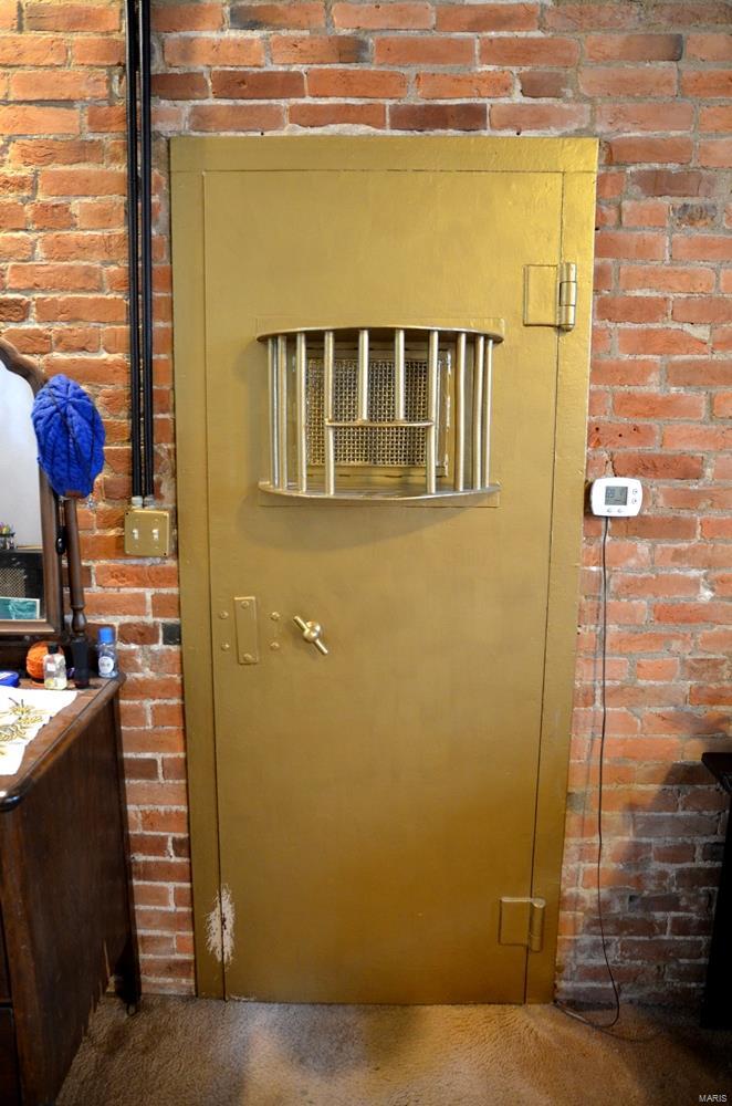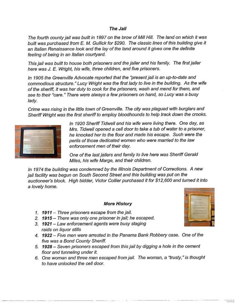Own a piece of history! Built in 1897, this property was originally both the Bond County Jail and living quarters for the Sheriff and his family. Now this beauty boasts 3 bedrooms and 3 bathrooms on 3 quiet, wooded acres. High ceilings, large, open living/dining room with another large den/office make the main living space feel spacious and yet still cozy. Exposed brick throughout, lovely woodwork, and the original cell door are just a few of the things that make this historic home unique! Relax next to the woodburning fireplace in the huge master bedroom (where prisoners were originally housed). Partial basement with laundry area, upstairs has a sitting room in addition to the bedrooms and bathrooms. One car attached garage, and an oversized detached 2 car garage behind the house give you even more space, as does the lovely finished loft space above the detached garage. Private, quiet back yard surrounded by woods, makes this fantastic property even more of a retreat. Suitable for Bed/Brk SpecialListingConditions: Short Sale