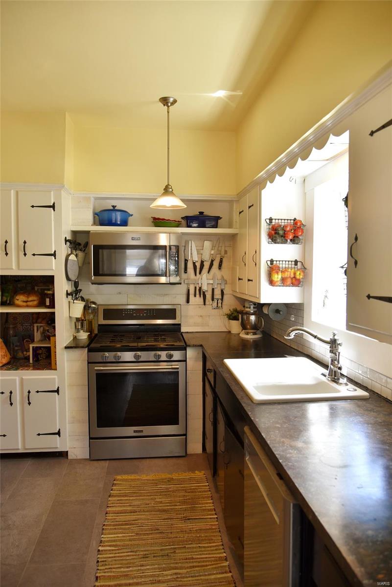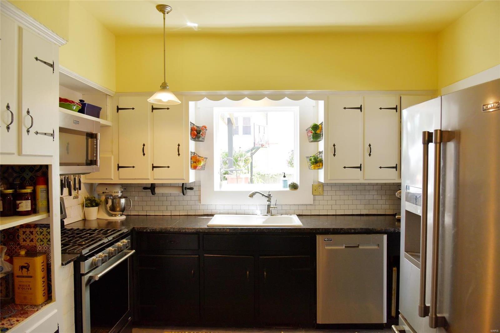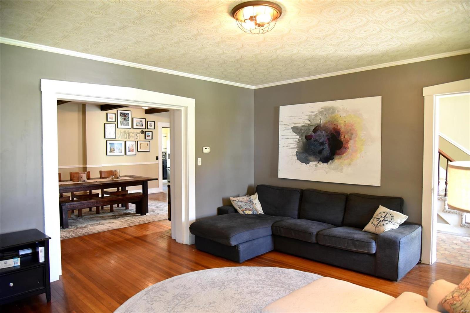 With over 2200 sq ft of beautifully renovated living space, this home blends a timeless, but modern aesthetic with the charm and character of a home built in 1864. Large, bright rooms, original wood floors, gorgeous moldings, and 3 stunning fireplaces (2 functional) all make this home unique. All appliances stay in the homey kitchen, as do the washer/dryer. Upstairs, don't miss the tiny deck that provides a retreat for 2 right next to the master bedroom or the entrance to the giant attic space. Entrance to the 4th bedroom is through the 3rd, or use it to make a bedroom suite. With ample closet space, a dry basement, and detached 2 car garage, there is storage to spare. If all the living space inside isn't enough for you, take some time to enjoy the covered front porch or shaded back deck. Recent updates: A/C 2017, ceramic tiles in kitchen/laundry/bath and structural/foundation work, and a BRAND NEW ROOF; furnace and water heater are 6 yrs old. Sellers offering a 1 yr home warranty!
