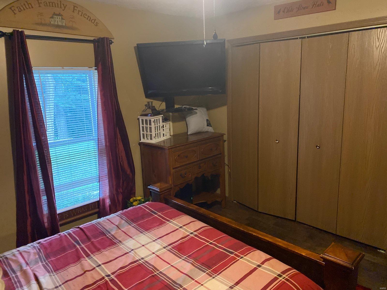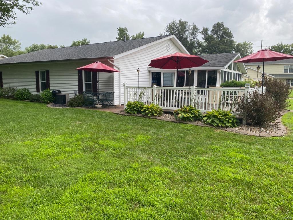 COUNTRY LIVING RIGHT IN TOWN! Well maintained 3 bedroom 2 bath ranch on nearly a half acre lot. Master suite boasts updated flooring, full bath, and his and her closets. Large open living/dining combo with an electric fireplace insert and custom rustic mantel and surround. Efficient galley ktchen feels very open with pass through to the living room and lots of counter space. Updated laundry room with laundry counter and large pantry. Property comes with both a finished attached 2car garage and a 32 by 32 insulated garage with attic storage space and concrete drive. You will enjoy spendng your evenings on the secluded deck off the sunroom, surrounded by low maintenance landscaping. Large back yard is hidden from main road. Easy interstate access.