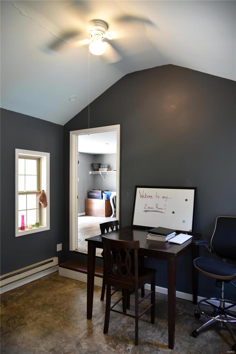 With a versatile open floor plan, this charming 1996 sq ft home is a unique blend of traditional and modern aesthetics. The large living/dining room features lots of natural light, french doors leading to a private patio, and a cozy woodburning fireplace. Enjoy your main floor laundry (washer/dryer included!) in an oversized utility room, a light and bright office w/a handpainted geometric mural (the "Zoom Room"), and a large family room with built in cabinets (ideal for a hobby space, or a spot for homeschooling/remote learning). The stunning concrete floors on the main level keep your toes warm and toasty with efficient in-floor heating, and zoned "mini split" units throughout the house handle the rest of your heating and cooling needs. Upstairs, don't miss the vintage tub in the freshly painted bathroom, or the skylights in both upper bedrooms. Alley access and carport in back, plus fresh landscaping and a fantastic, welcoming porch in front. This isn't your Nana's bungalow!