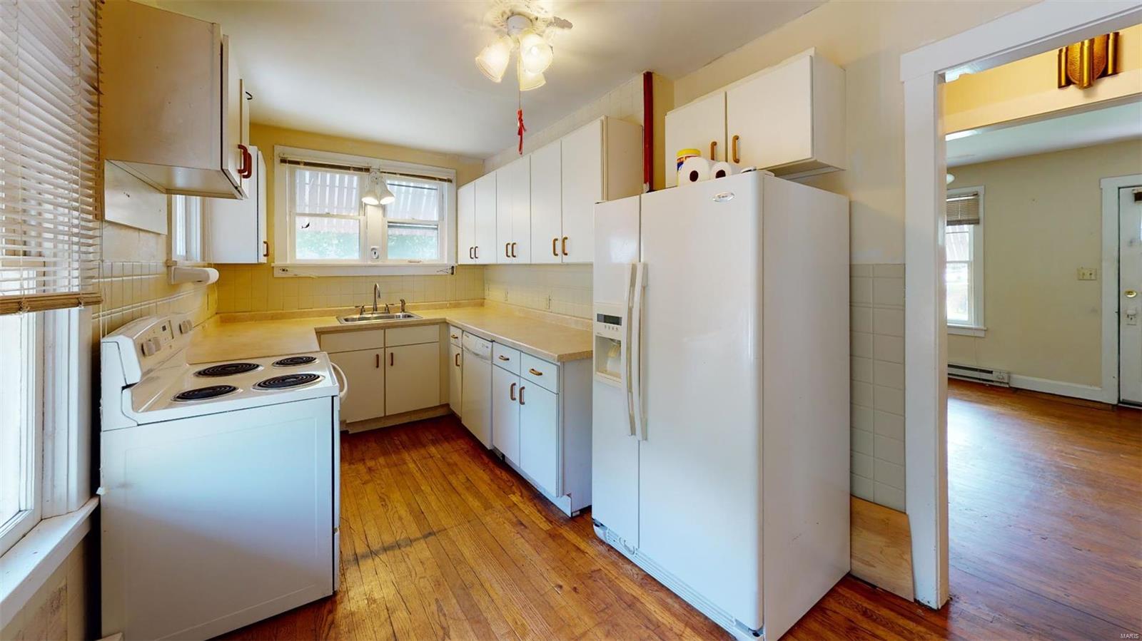 Oversized 2 car garage with detached house! While this cozy brick bungalow is nothing to sneeze at, it's the outdoor space and large garage that really make this property special! Behind the unassuming facade of the house and garage, this substantial backyard is an absolute delight. Enjoy mature trees and other beautiful landscaping from your private porch/deck, & live a quiet life in a quiet neighborhood. Have a passion or a hobby that needs a place to grow? Use that roomy garage for more than just storing the mower and your car! Inside the house, original wood floors are waiting to be refinished in most rooms, and the small footprint of the house means that other updates and repairs shouldn't break the bank. Plus, a full basement adds storage and space that make living in 750 sq ft not just possible, but a pleasure. It's tiny house living, but for regular people, who still have "stuff." Plus, real estate experts say invest in the cheapest house in a nice neighborhood - & THIS IS IT!