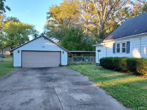Lots of potential in this 1330 sf home. 2 Large bedrooms and a den that has been used as a 3rd. 2 bathrooms, main floor laundry and lots of storage in the mudroom. Nice eat in kitchen with solid wood cabinets and all appliances included. Some of the floor coverings had to be removed so that the floors could be more easily navigated with a walker. Subfloor has been left bare so that buyers can install the new flooring of their choice. The real appeal of this property is outside! Large 2 car garage with it's own furnace and electrical. Covered, lighted patio, fenced backyard with water feature and a huge double lot! This house is perfect for a family just starting out or someone downsizing that needs all on one level living.