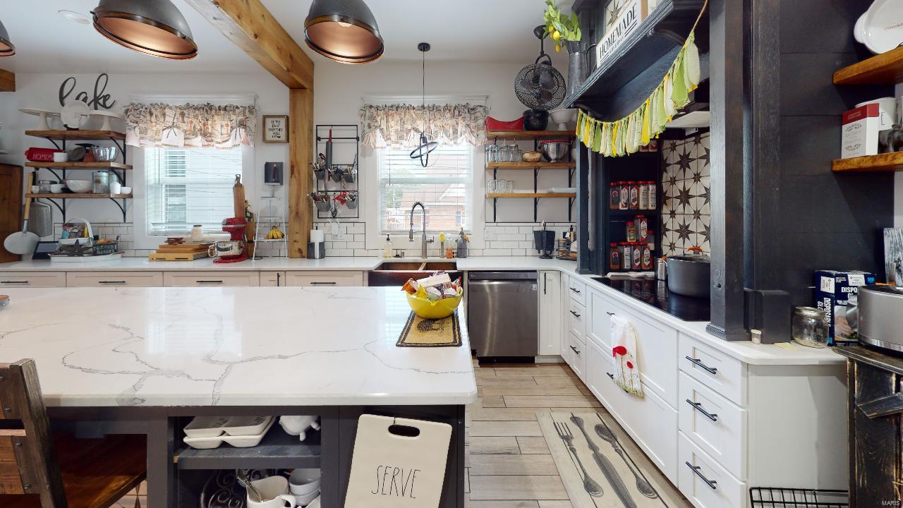 This historic home has been fully remodeled from top to bottom to give you the charm of a classic home, like a big front porch, huge pocket doors, tall ceilings, bay windows, original wood floors & millwork, AND all of the modern touches you'll love, like an enormous kitchen island with quartz countertops, custom range hood & stove cove, updated bathrooms w/ custom ceramic tile, TWO laundry rooms & so much more. In addition the basement has it's own living, kitchen, sleeping area, and bonus/closet space. Use this space for yourself or rent it out! It has it's own entrance & can be a complete apartment on it's own. Speaking of apartments, this home features a detached garage with two 1 bed, 1 bath apartments. Apts rent for $550/mo each & are always rented, so you've got income coming in to pay that mortgage. With a fenced in yard & dedicated parking spaces you'll be comfortable inside & out. Be sure to take the 3D Virtual tour to appreciate everything this house has to offer.