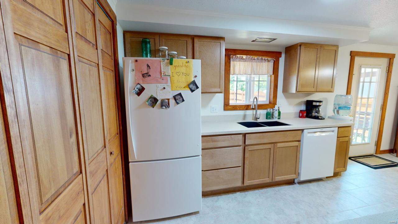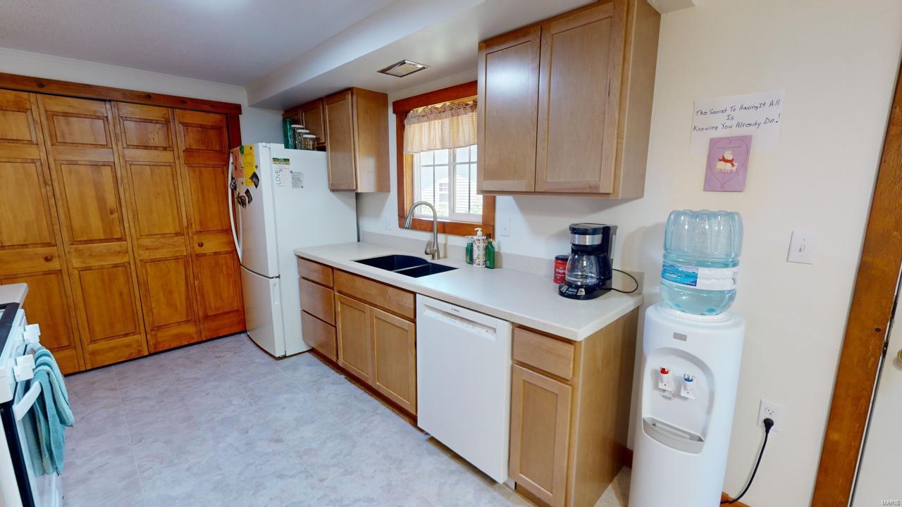 This well-maintained single owner home has NEW A/C, NEW FURNACE, NEW HOT WATER HEATER, NEW ROOF, plus a completely remodeled kitchen with NEW CABINETS featuring soft-close drawers, Swanstone solid surface countertops & LVP floors. On the main floor there are 3 bedrooms, 1 bathroom, a living room & a dining/kitchen combo with a large pantry. (Washer/dryer hookups are in pantry if you prefer your laundry upstairs.) Below you'll find a FULL, DRY BASEMENT just waiting to be fully finished. It currently houses the laundry, lots & lots of storage and a bonus room that can be used for an office, a guest space or a hobby area. A cedar fence surrounds the entire backyard providing your own private oasis. A large covered deck provides seating in the shade and a place to grill out. The oversized detached 2 car garage is accessed through the rear alley and has plenty of storage space built in. Its hard to find a home so neat, clean and updated. Don't miss it!