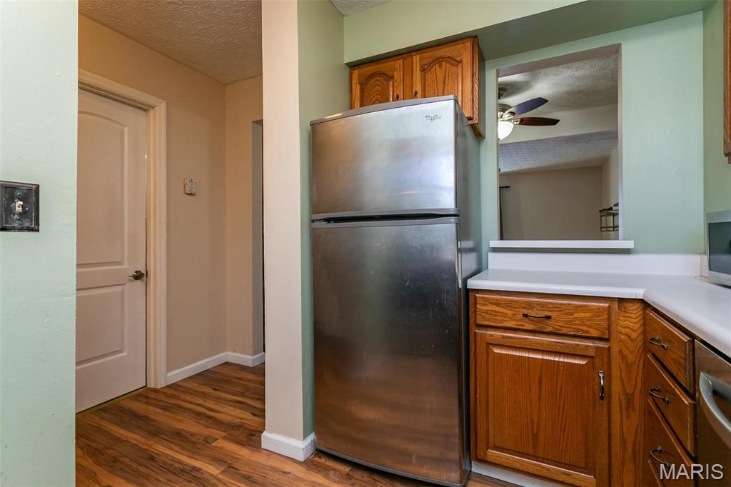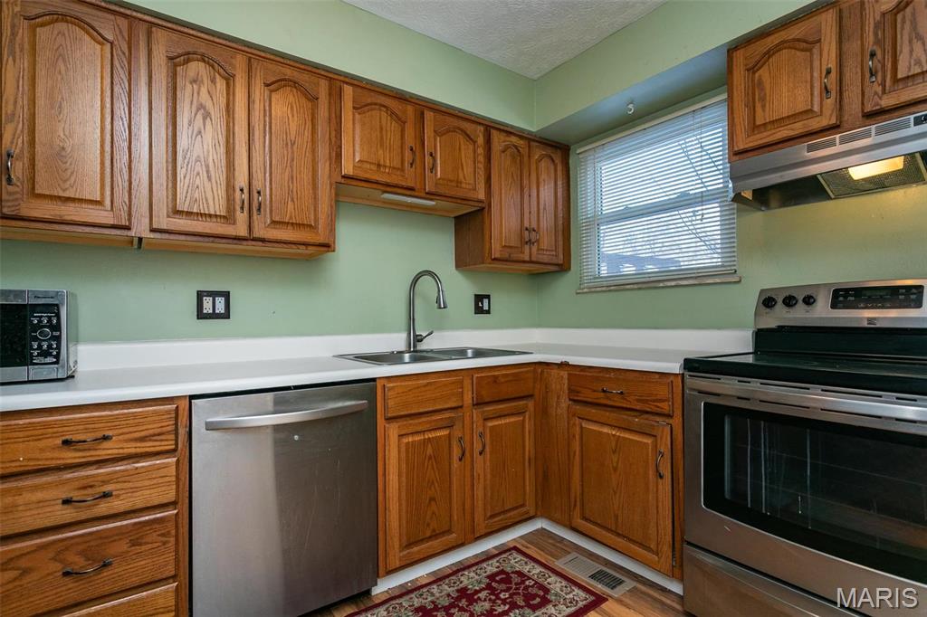Make this 2BR/2BA condo with a finished basement home! Main floor includes a large living/dining area with sliding doors that overlook the patio and bike trail, a kitchen fully furnished with all stainless appliances, 1/2 bath. Wood laminate flooring throughout main floor. Upstairs is home to a large bedroom with double closets as well as a 2nd bedroom with walk in closet. Full bathroom upstairs has a second sink/vanity that attaches to the primary bedroom. You will love the finished basement. The main finished room down there has a partition that could separate the space and make a small office. Huge laundry/storage area (washer & dryer are included) has plenty of space for all your things. This property directly backs to the bike trail leading to many hotspots in the area including the SIUE campus and has 2 assigned parking spaces. New Electrical Service and sewer stack. Please ask your agent for specifics required on lending.