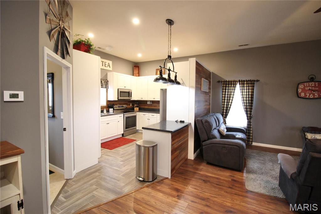 PRICED TO SELL! Six acres with NO RESTRICTIONS! This home is located just THREE minutes to 107 boat ramp and FIVE minutes to Route U boat ramp making it prime access for outdoor enthusiasts and water lovers. The property has seen recent upgrades, such as new kitchen cabinets, countertops, beautiful stainless steel appliances, and new metal roof in 2020. Excellent road frontage, large two bay shop with concrete floor and over 6 acres of land to enjoy time outside. The layout is perfect for those seeking a full-time residence or retreat, with the added potential of being an INCOME-PRODUCING property. The home is set up to be sold fully furnished, making it ready for Airbnb guests, providing an immediate opportunity for short-term rental income.
