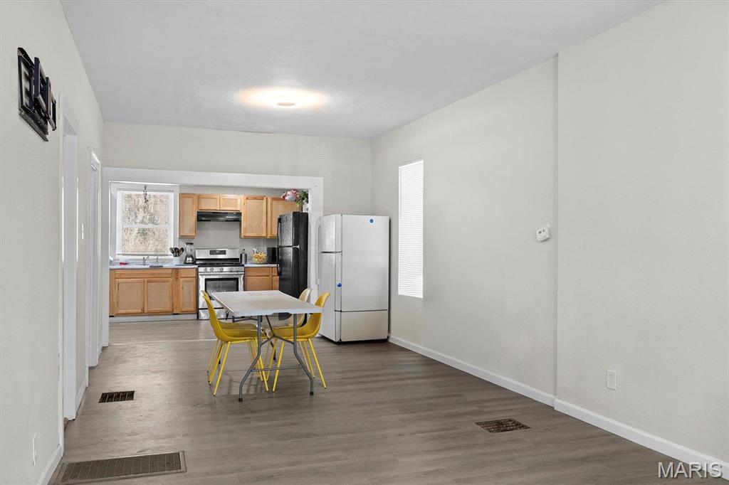 Your lucky day! back on the market, No fault of the seller Charming Move-In Ready 2 bedroom home in Granite City! Off the newly built room front porch, step into this beautifully updated 2-bedroom 1-bathroom home. From the moment you walk in, you'll appreciate the tasteful updates throughout, including fresh paint, new window treatments, beautifully finished floors and newly updated bathroom and kitchen. The open space concept flows seamlessly into the a dining room and an updated kitchen that shines with ample storage and sleek countertops, perfect for your culinary adventures. The full basement provides plenty of storage, room to customize. Outside, you'll find off-street parking. Roof, Water heater and Furnace are less than 2 yrs old. AC installed May 2025. Passed Occupancy
