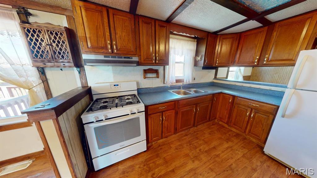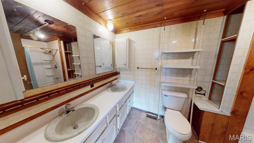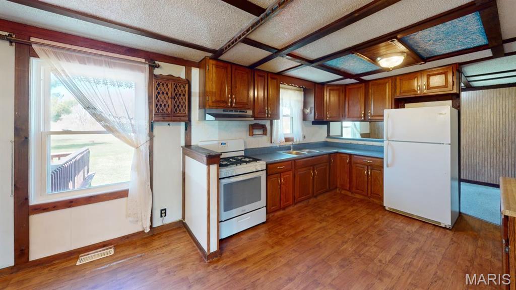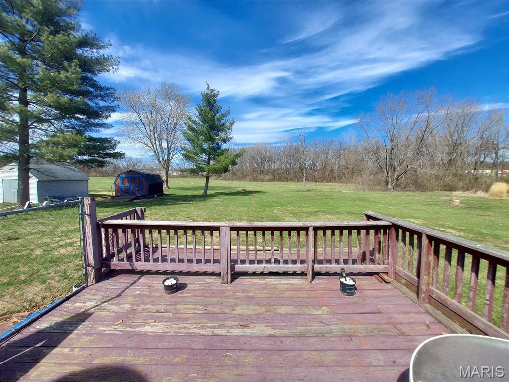 Calling all HGTV fans!! This house has all of the potential for a beautiful makeover. It may look like "Grandma's House" but don't let the choice of finishes fool you. This is a spacious, solid ranch home with everything the modern buyer needs...except the look. With some flooring and other aesthetic updates this home will be a showpiece for years to come. The woodburning fireplace is the highlight of the living area. The primary bedroom features double closets and a full bath with tub/shower and double sinks. The other two bedrooms and second full bath are on the other side of the house for a split design. The eat-in kitchen has plenty of pantry space and a pass through to the separate dining area. The attached two car garage provides a workshop space in addition to lots of storage. An additional storage shed is located in the BIG backyard. This lot at the end of a dead end street provides a country feel and views of wide open spaces from the back deck. Selling as-is.