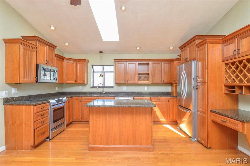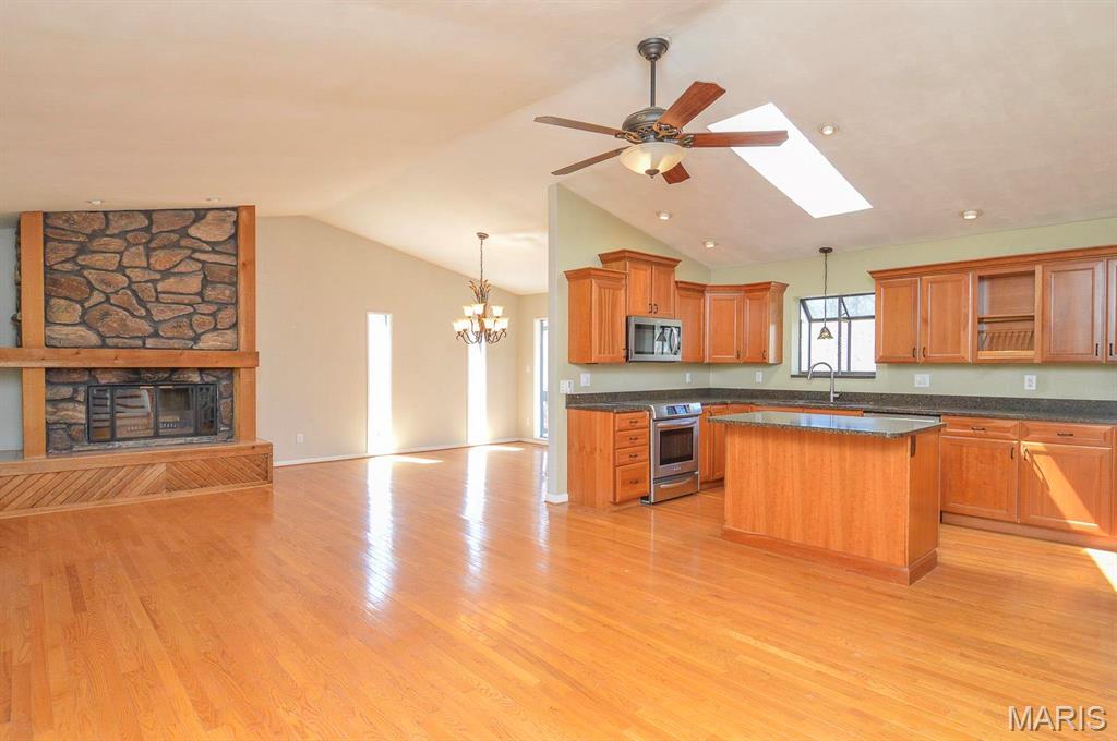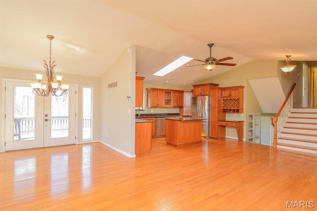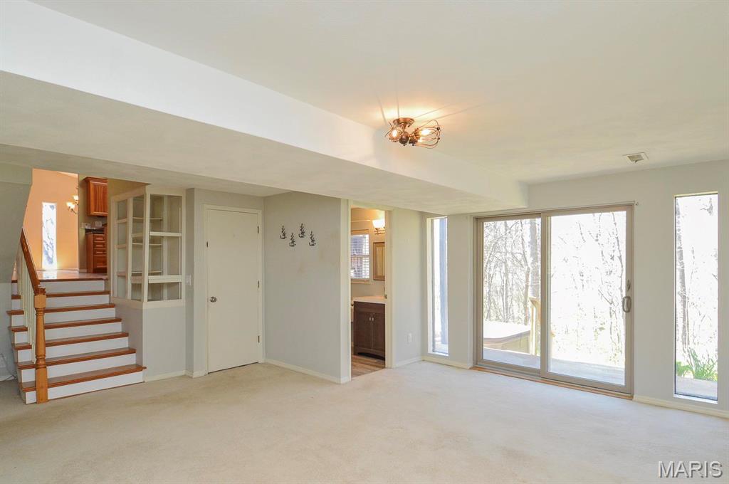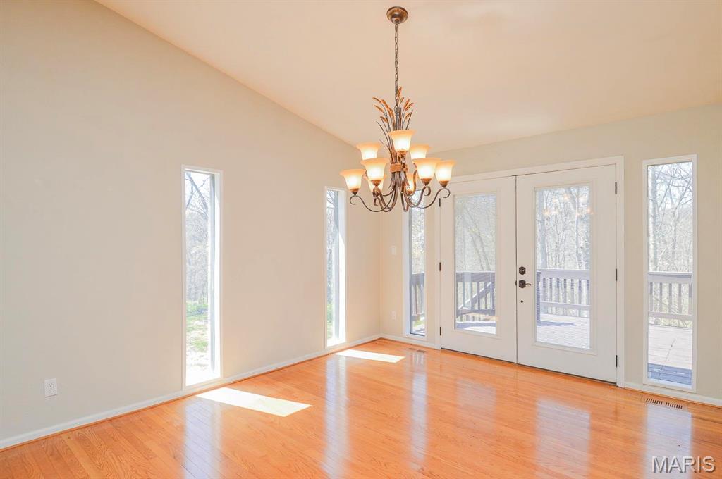Nestled on a secluded 5-acre lot backing to peaceful woodlands, this stunning home offers the perfect blend of comfort, space, and natural beauty. Step inside to a bright and airy great room featuring rich natural wood floors, vaulted ceilings with a skylight, and an inviting wood-burning fireplace—an ideal space for gathering with family and friends. The kitchen is complete with custom wood cabinetry, granite countertops, and seamless flow into the adjacent dining room, which opens to a spacious wooden deck—perfect for outdoor entertaining. The bedrooms are generously sized, each with large closets. The primary suite is a true retreat, featuring French doors that lead to a private balcony with breathtaking views of the surrounding forest. The finished lower level offers a versatile rec/family room with direct access to a patio and a relaxing Jacuzzi tub. Come experience the tranquility and charm of this woodland haven—your perfect home awaits!