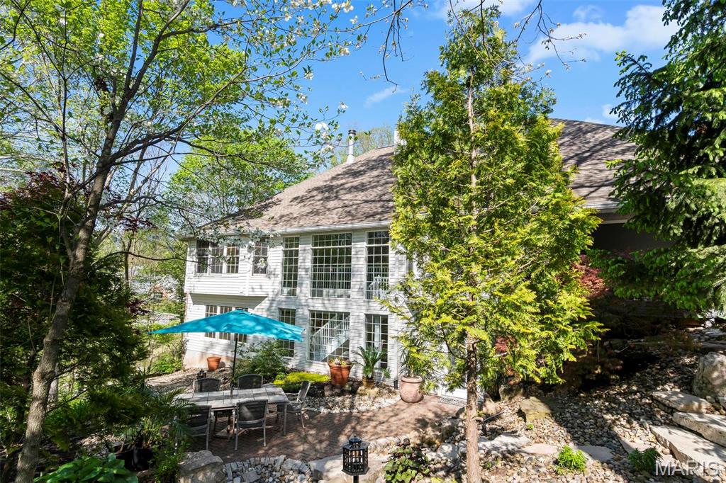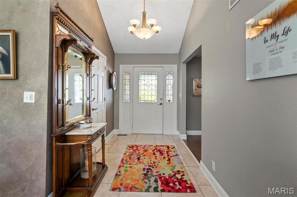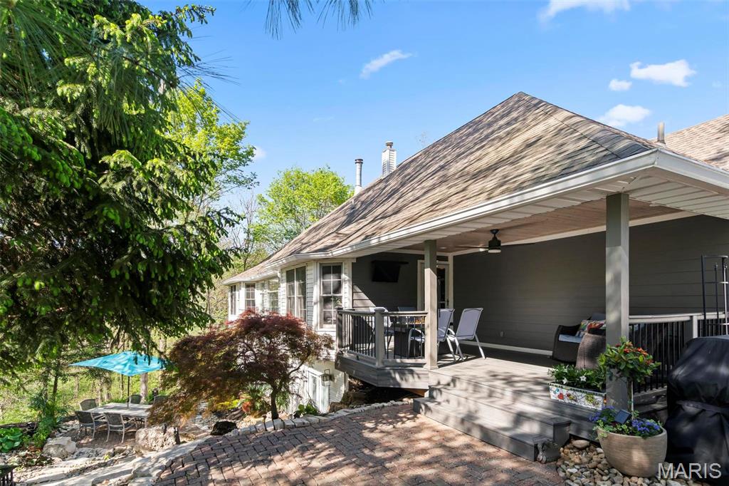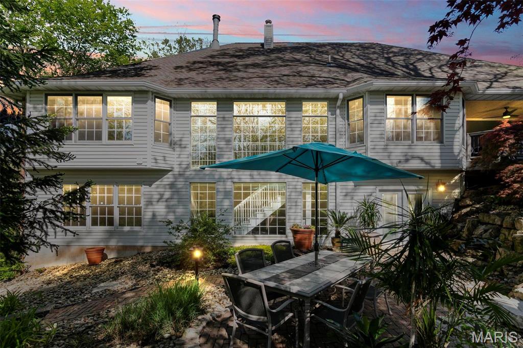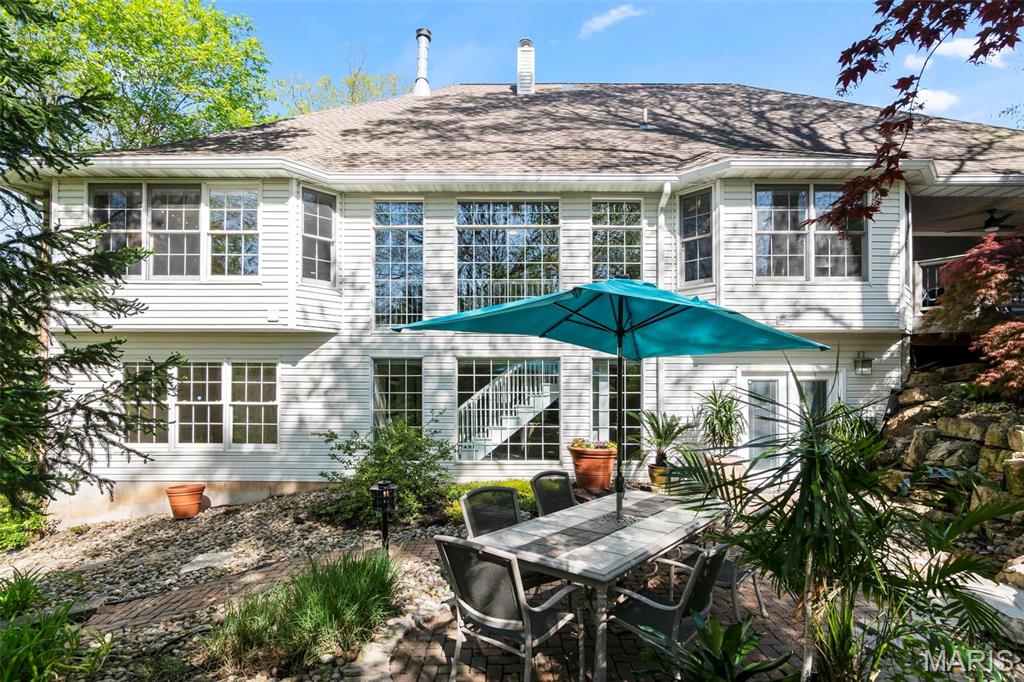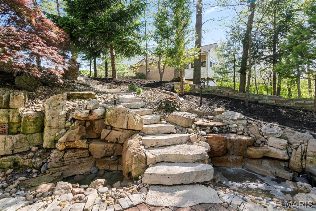 Meticulously maintained 4BD/3.5BA ranch with full walkout basement in sought-after Kingsbrooke Subdivision and Edwardsville School District. Classic, flowing floorplan with an atrium-style, light-filled great room, hardwoods, and gas fireplace. Formal dining plus a sun-filled breakfast nook. Kitchen features granite, stainless appliances, custom cabinetry, and a built-in bar for ultimate convenience. Step outside to your backyard oasis: covered deck, multiple patios, tiered gardens, and a tranquil waterfall - perfect for morning coffee or evening relaxation. Updated main-floor primary suite offers a spa-style bath with heated floors and walk-in closet. Finished walkout basement adds private guest quarters, rec space, and storage. Oversized three-car garage with low-maintenance coated floor. Professional landscaping, in-ground irrigation system, quick highway access, and shopping nearby. Strength, style, and sophistication - this home has it all.