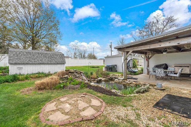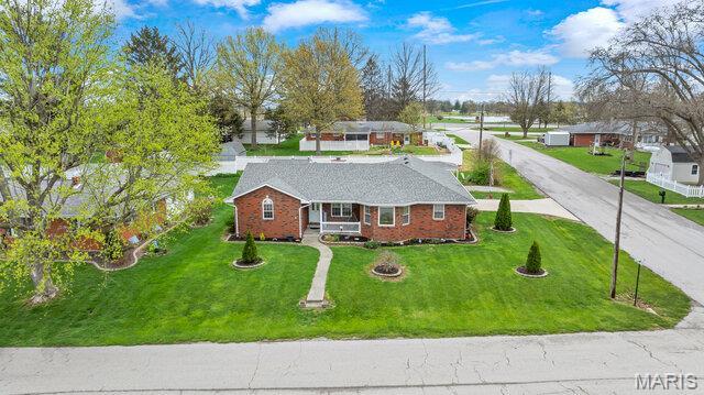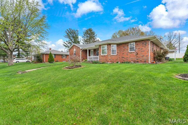 Discover the charm and warmth of this exceptional 3bed, 2bath ranch, situated on a spacious corner lot. Built in 1994, this brick residence offers 1,582 square feet of comfortable living space. The upstairs has been freshly painted & the hall bath has been recently updated. The Vaulted living room features a cozy fireplace & flows seamlessly into the kitchen, complete with slate flooring, stainless steel appliances & a breakfast bar. The primary suite is spacious, with a full bathroom & walk-in closet, while two additional bedrooms offer flexibility for guests or hobbies. The partially finished basement includes two additional spaces with closets, ideal for a home office or recreation space. Step outside to discover the tranquil oasis of the covered patio & peaceful koi pond with waterfall perfect for entertainment. The residence features ample parking space & storage including a 2 car garage & detached carport. Generator included. This home is ready for you to make it your own!
