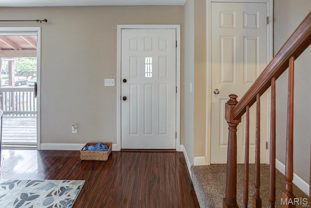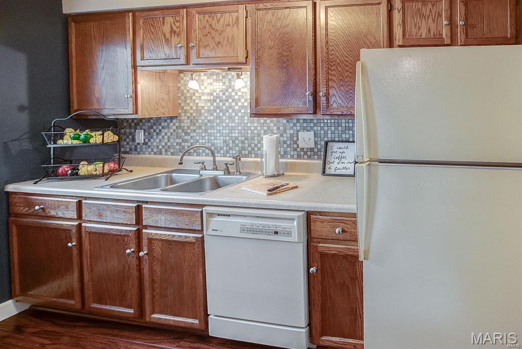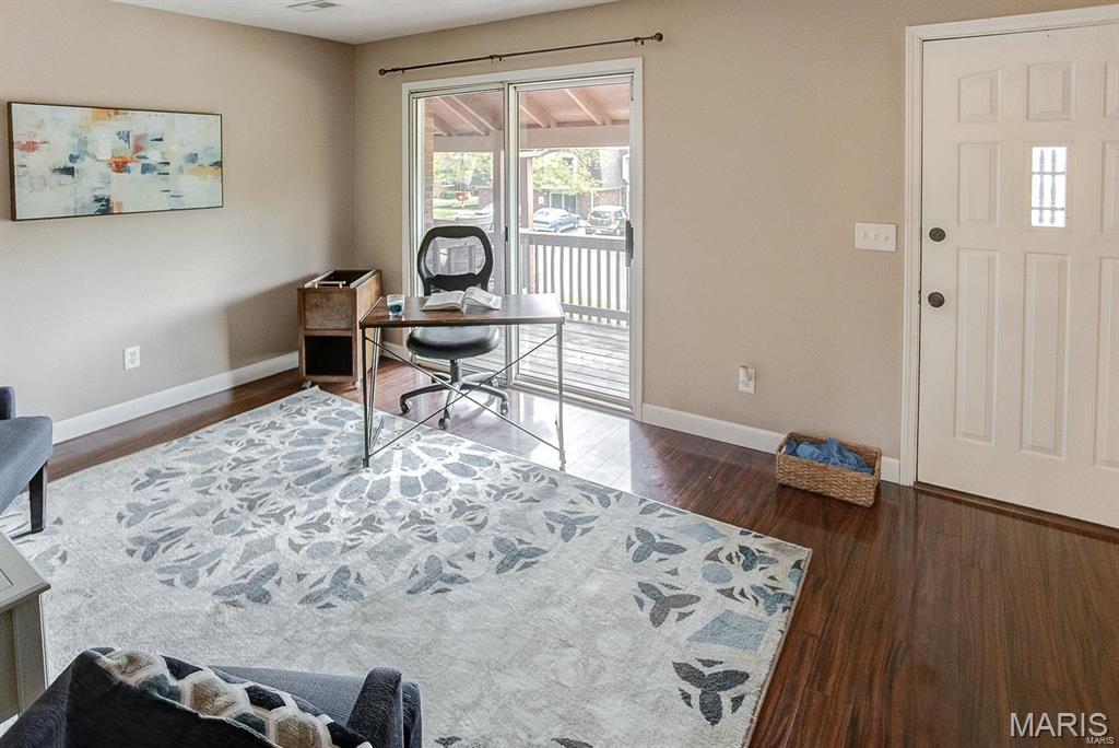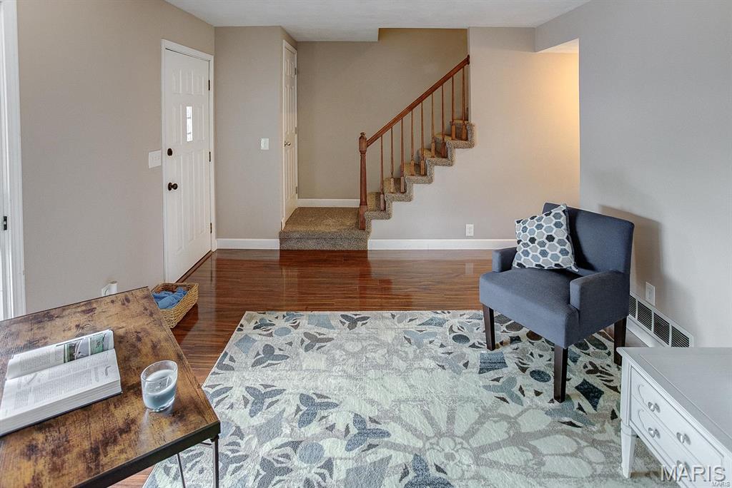 BACK ON MARKET ! No Fault of Seller!! Live close to everything in this affordable, spacious 2-bedroom, 1.5-bath, three-level condo. Freshly repainted with a repaired retaining wall, it's truly move-in ready! The oversized one-car garage provides ample parking and storage. Enjoy outdoor living on the front deck or back patio with private yard—great for relaxing or entertaining. The kitchen features all appliances and a breakfast bar, while a separate dining area and main floor laundry add comfort and convenience. Upstairs, both bedrooms are generously sized with plenty of closet space. Located minutes from STL, hospitals, universities, shopping, restaurants, and Scott Air Force Base—with easy interstate access. Ideal for low-maintenance living or as a passive income opportunity. Offering flexibility for investors or future homeowners. Don’t miss this chance to own a well-maintained home in a fantastic location! Location: Interior Unit