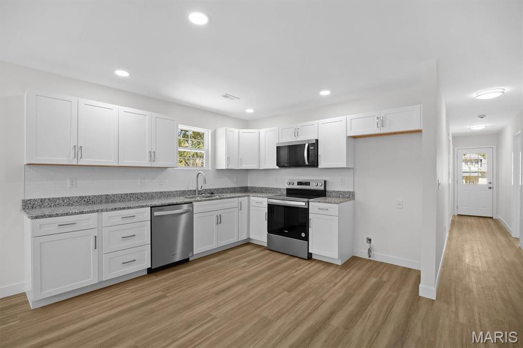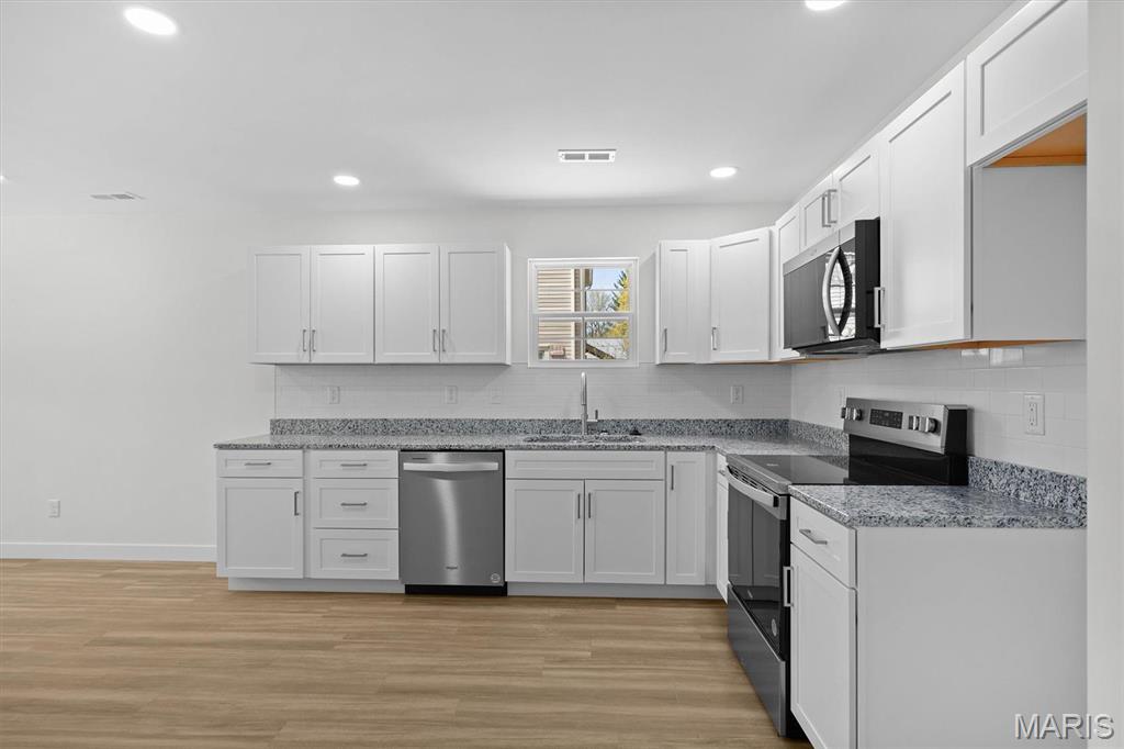 Stunning 3 bedroom, 2 bathroom, ranch style home designed for modern living. The open concept kitchen and living area create the perfect space to call home, featuring stylish vinyl plank flooring throughout. The kitchen is a chefs dream with granite countertops, subway tile backsplash, and white cabinetry offering ample storage. Stainless steel stove, dishwasher, and microwave round this charming kitchen out. Relax in the luxurious primary ensuite, which boasts a double vanity. Enjoy the convenience of main floor laundry. Do not miss your chance to own a brand new home! This is a Fannie Mae Property. Before making an offer Buyer and/or buyer agent should verify all MLS data.