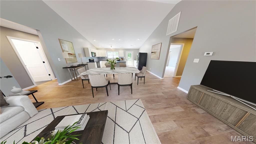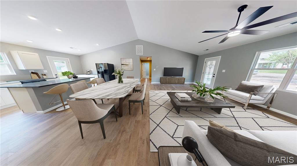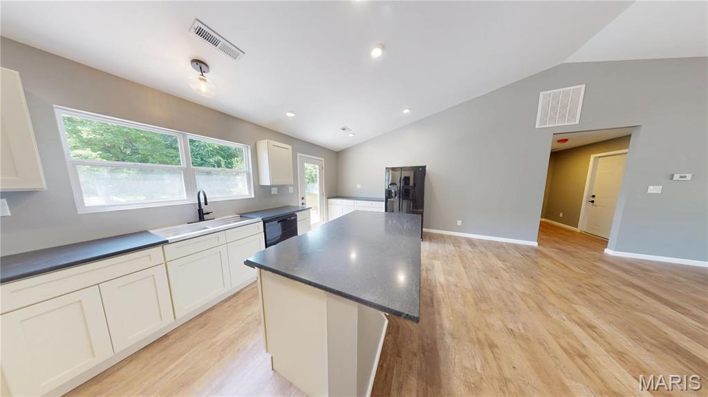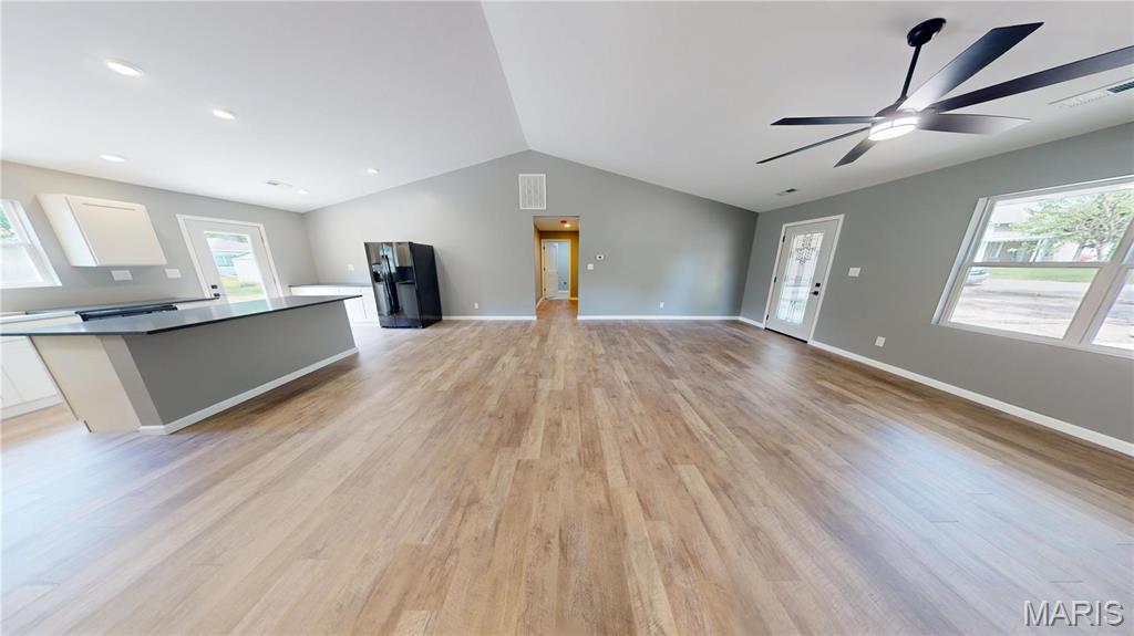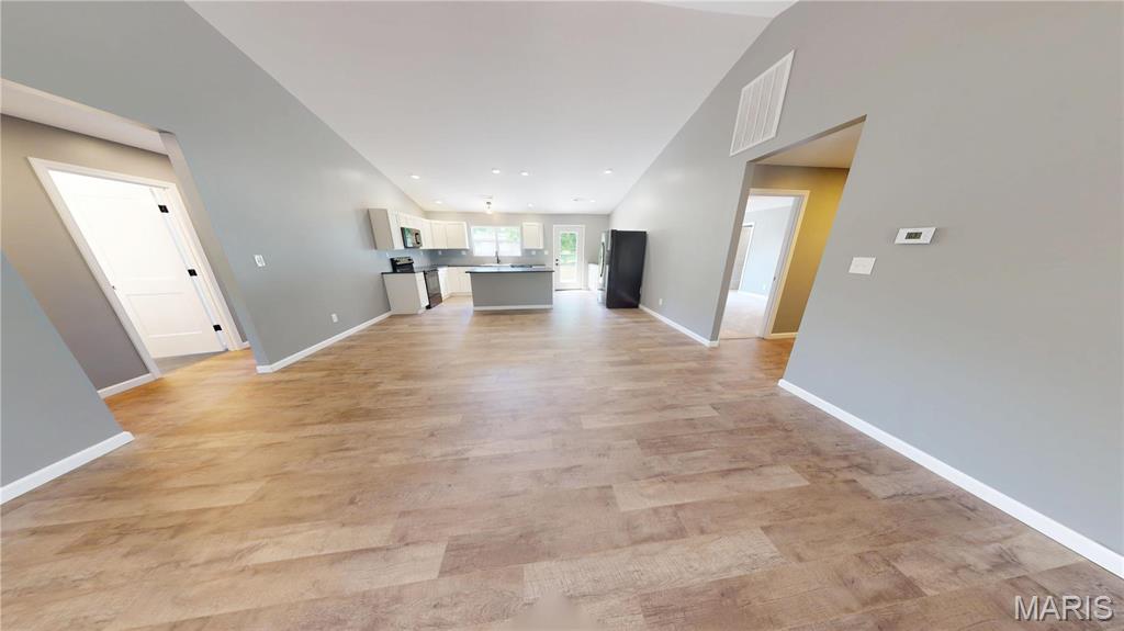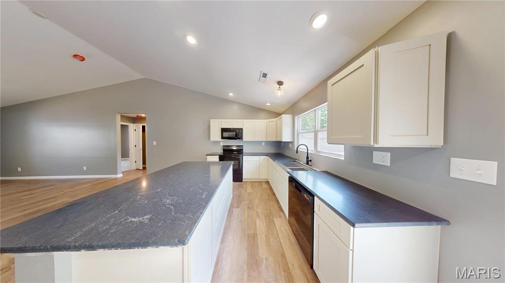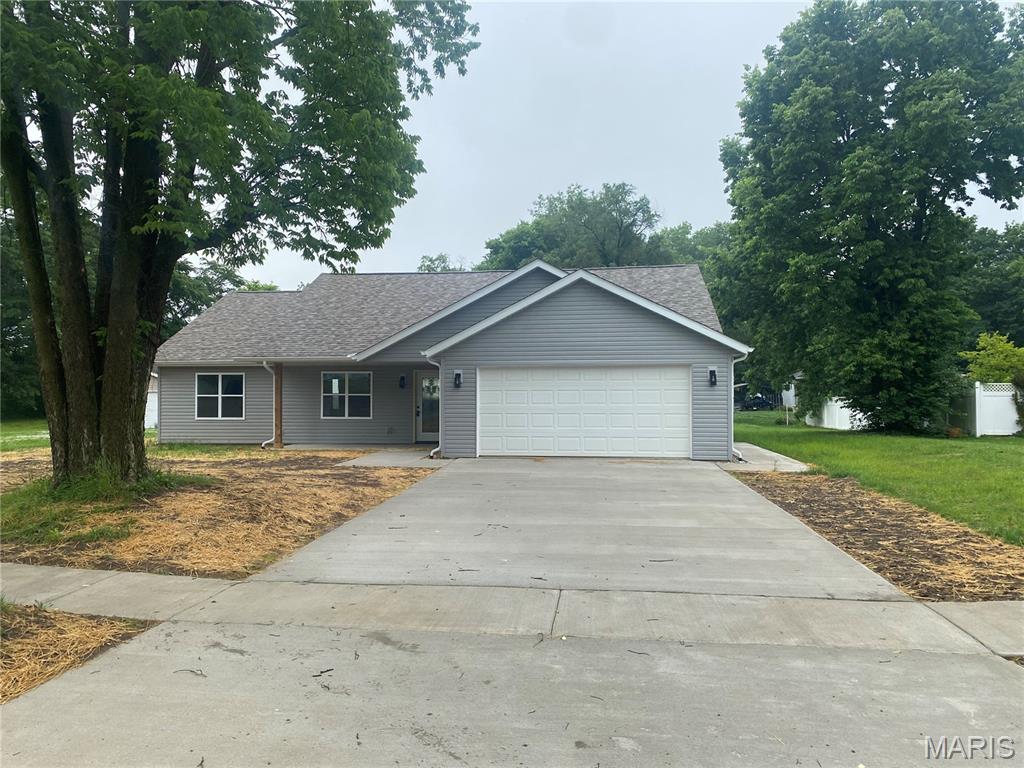 Brand New Construction! 1,700 Sq Ft of Modern Living! Step into this beautifully crafted, never-before-lived-in home offering contemporary style and comfort. Featuring an open-concept great room with vaulted ceilings and abundant natural light flowing through the living, dining, and kitchen areas. The kitchen is a showstopper, boasting sleek black granite countertops, custom cabinetry, and a large center island that doubles as a breakfast bar. The private primary suite features a walk-in closet, dual sinks, and a large walk-in shower. Split-bedroom layout provides privacy with two additional bedrooms on the opposite side. Additional features include a convenient mudroom entry from the attached 24x20 two-car garage, which offers storage space above with a pull-down attic ladder, plus room for a workshop. Set on an oversized lot, this home provides generous front and back yards ideal for entertaining. The charming covered front porch enhances curb appeal and welcomes you home in style. Additional Rooms: Mud Room