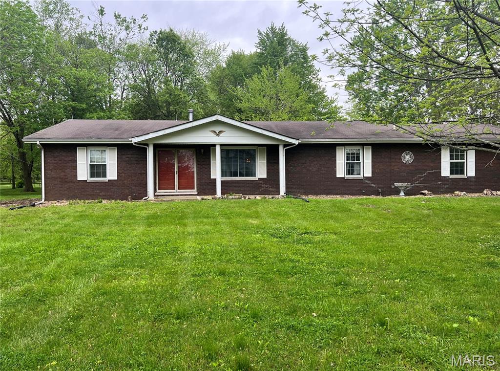 3 bedroom brick ranch on 2.18 acres. Needs TLC, but can easily be brought back to its former condition. Main floor laundry could be a 4th bedroom . Laundry hookups located in lower level as well. The full basement could be finished to include a family room, game room and much more! Fenced back yard, 14 x 20 metal Storage building on a concrete slab has a riding lawnmower and wagon that are included with the property. Underground fuel storage tank located on property and capacity is unknown. Furniture in house and garage is available to stay with the property. This home has a Highland address but is in Triad School Dist. #2
