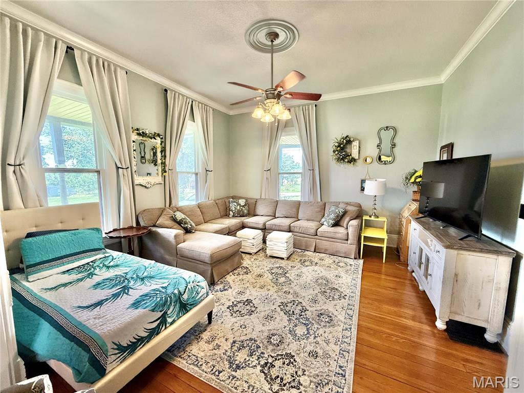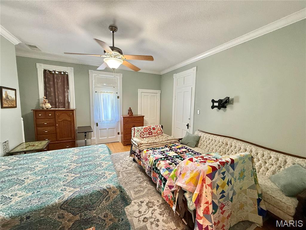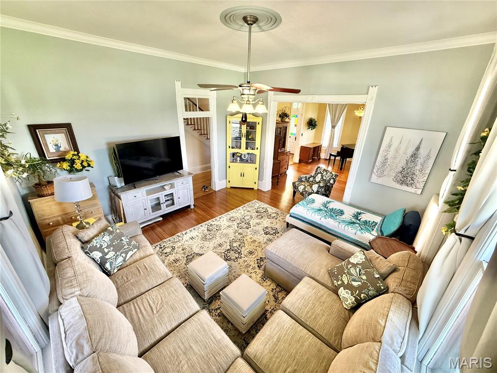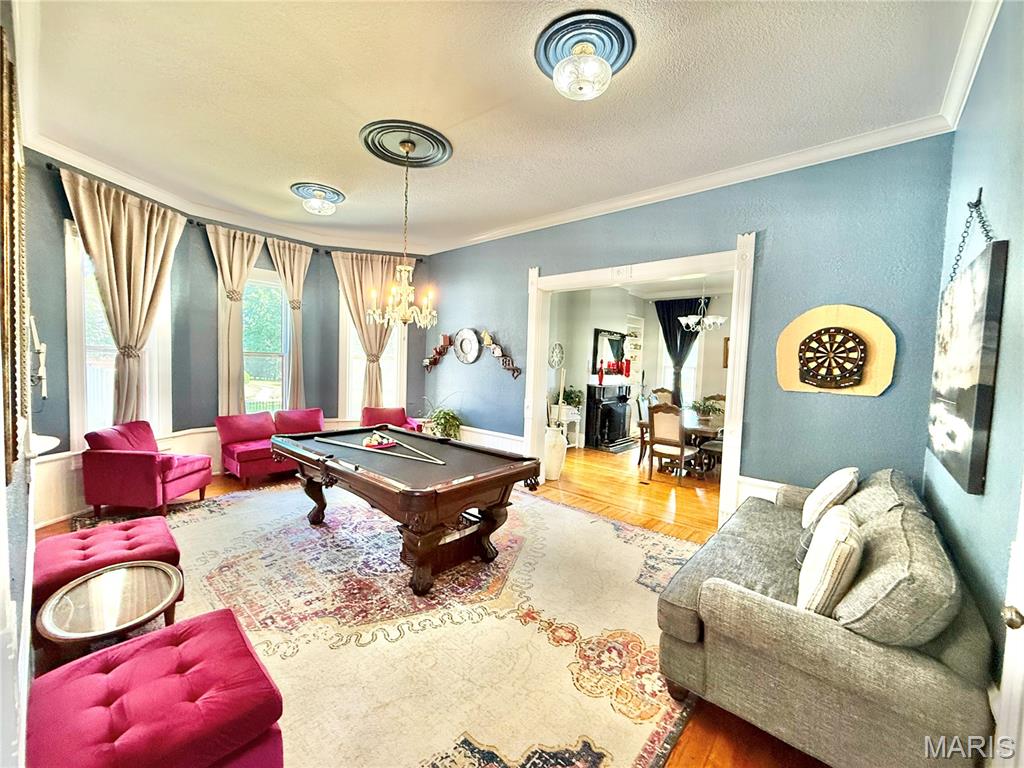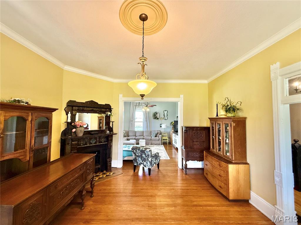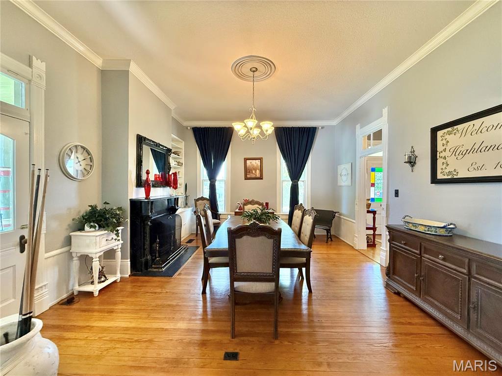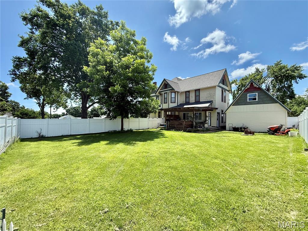 Welcome to this stunning 2-story modern Victorian home, offering timeless elegance and thoughtful updates throughout. This home features over 3500sqft of living space for you and your growing family. Step inside to discover soaring 10-foot ceilings, rich natural hardwood flooring, and exquisite crown molding in every room. The updated kitchen boasts beautiful cabinetry, a large center island, and sleek stainless-steel appliances, while the renovated bathrooms offer style and function. The Primary bedroom offers a modern updated full bath with a walk-in shower. Each spacious bedroom provides comfort and versatility for any lifestyle. Enjoy two fully functional fireplaces in the dining and sitting rooms, perfect for cozy gatherings. Outdoor living shines with a charming wrap-around porch, multiple additional porches, a second-story balcony, and a fenced backyard with a patio—ideal for privacy and entertaining. Situated on a generous 0.66+/- acre lot, there’s ample space for children, pets, or large family gatherings. The detached oversized one-car garage features additional storage in the upstairs attic. Gorgeous landscaping surrounds the home, and a basement provides extra storage or a secure storm shelter. This is truly a dream property blending classic character with modern comfort.