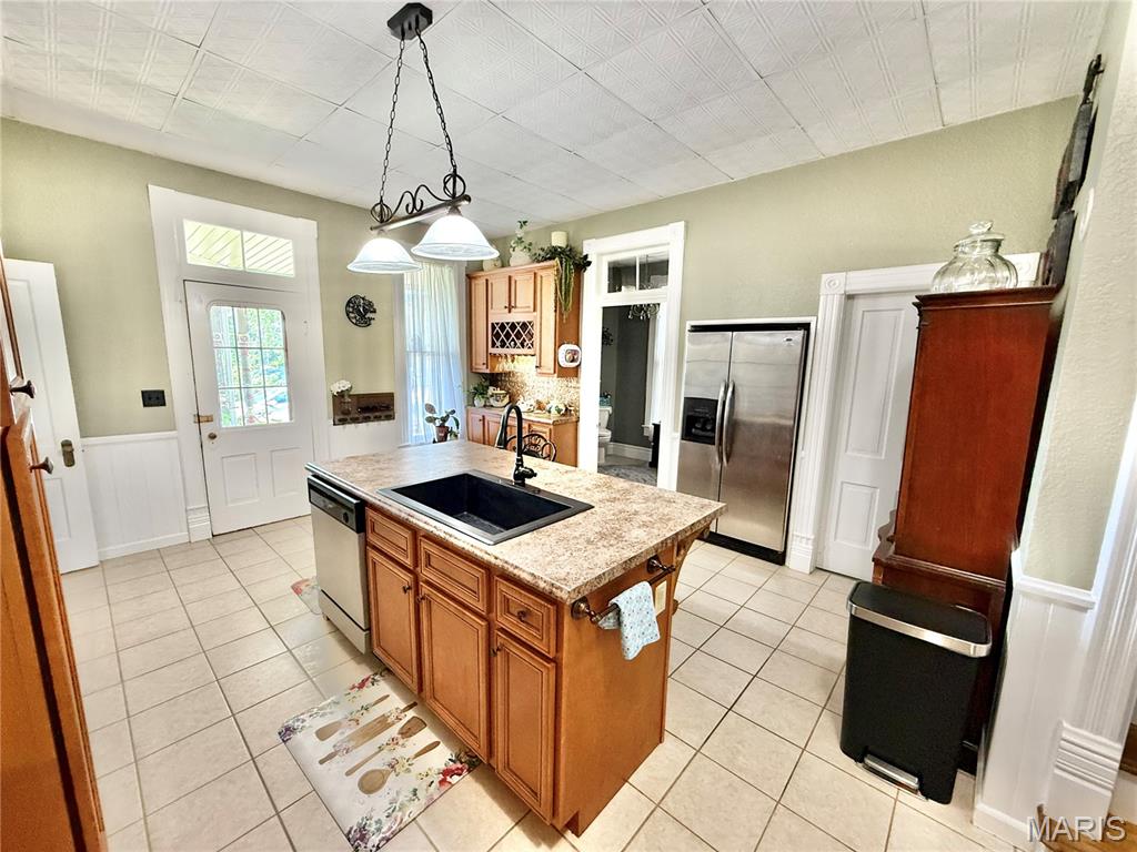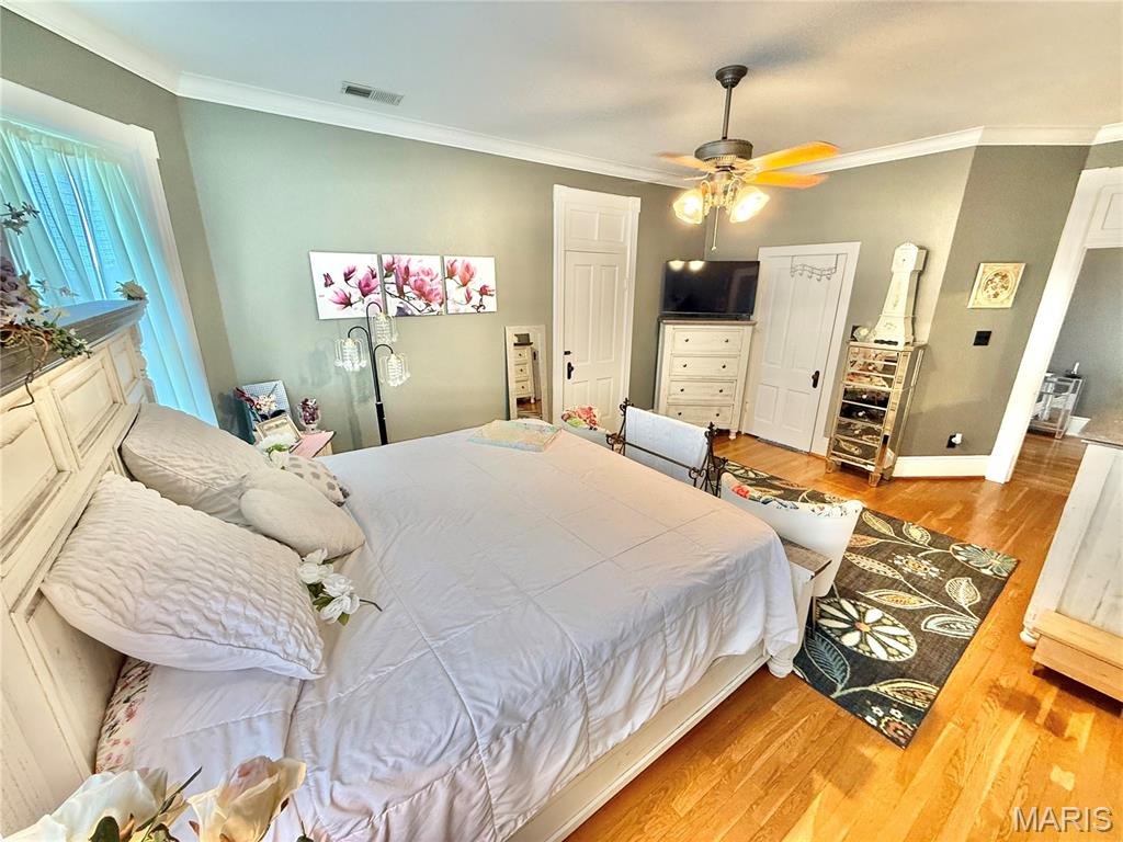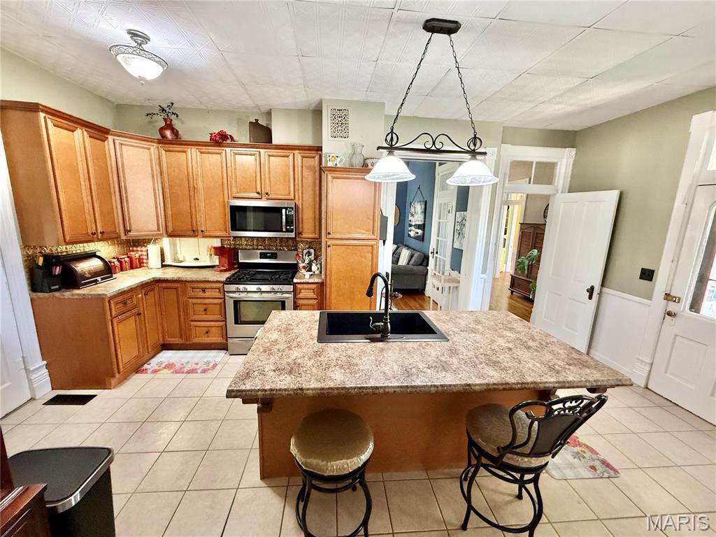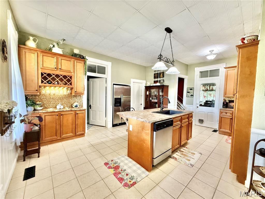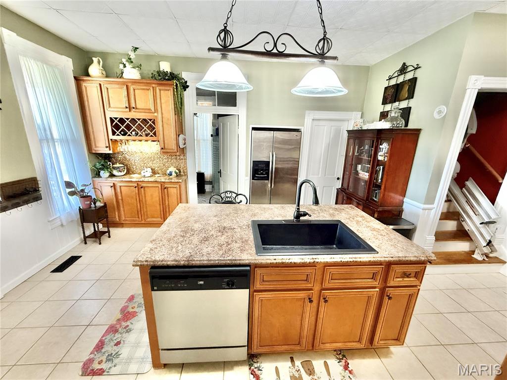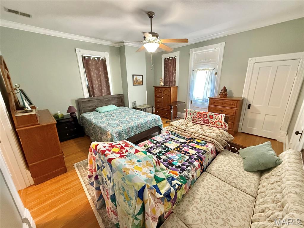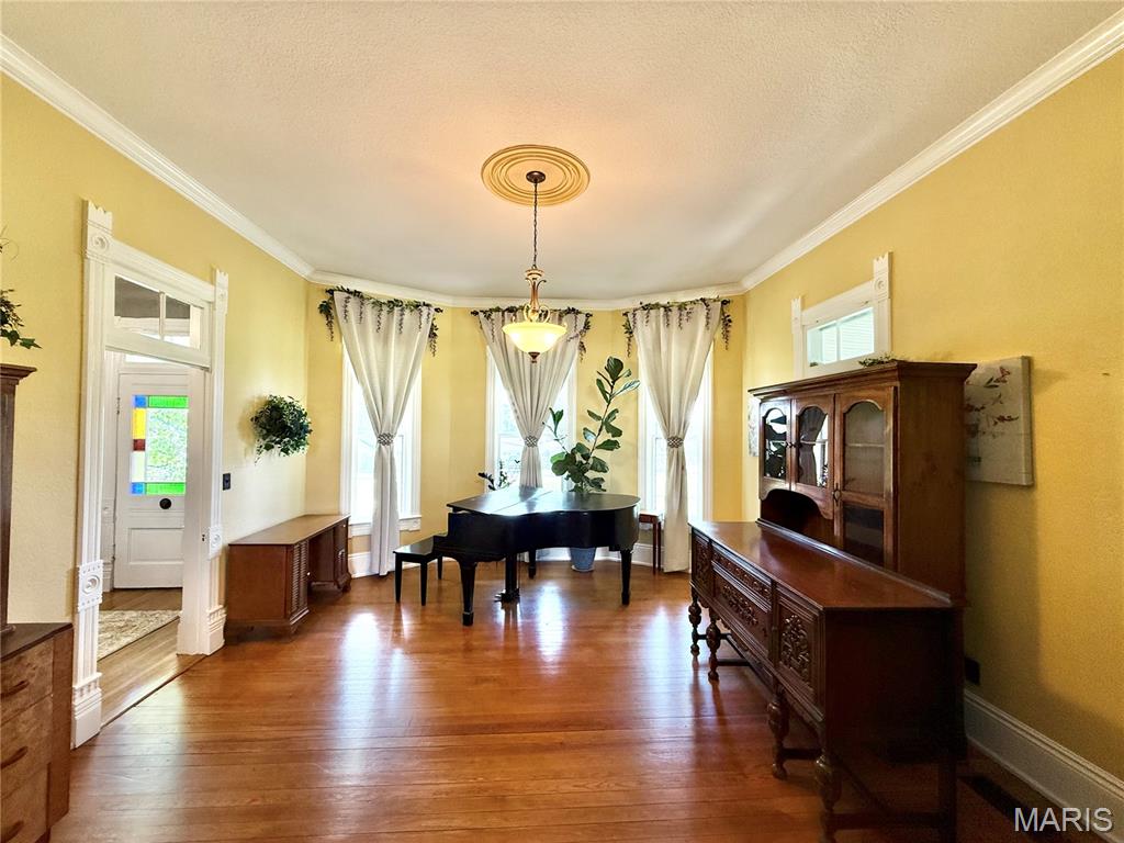 Welcome to this stunning 2-story modern Victorian home, offering timeless elegance and thoughtful updates throughout. This home features over 3500sqft of living space for you and your growing family. Step inside to discover soaring 10-foot ceilings, rich natural hardwood flooring, and exquisite crown molding in every room. The updated kitchen boasts beautiful cabinetry, a large center island, and sleek stainless-steel appliances, while the renovated bathrooms offer style and function. The Primary bedroom offers a modern updated full bath with a walk-in shower. Each spacious bedroom provides comfort and versatility for any lifestyle. Enjoy two fully functional fireplaces in the dining and sitting rooms, perfect for cozy gatherings. Outdoor living shines with a charming wrap-around porch, multiple additional porches, a second-story balcony, and a fenced backyard with a patio—ideal for privacy and entertaining. Situated on a generous 0.66+/- acre lot, there’s ample space for children, pets, or large family gatherings. The detached oversized one-car garage features additional storage in the upstairs attic. Gorgeous landscaping surrounds the home, and a basement provides extra storage or a secure storm shelter. This is truly a dream property blending classic character with modern comfort.