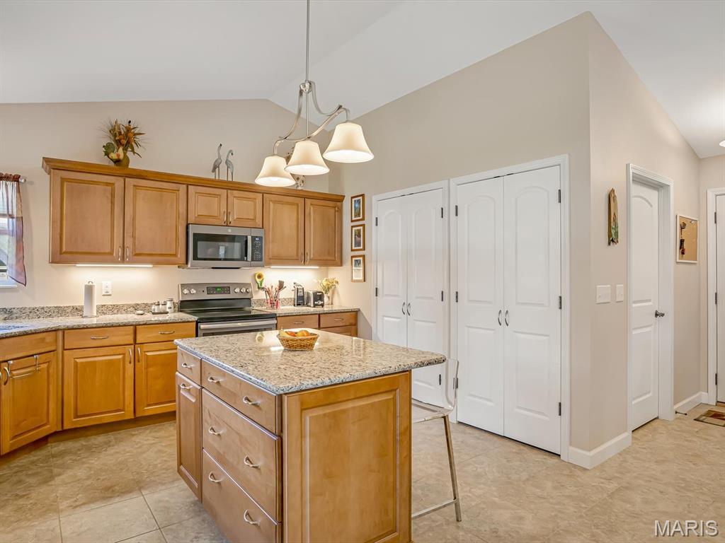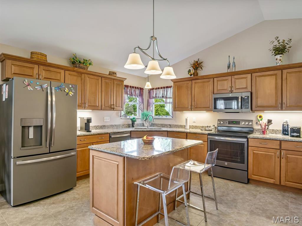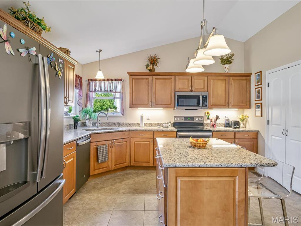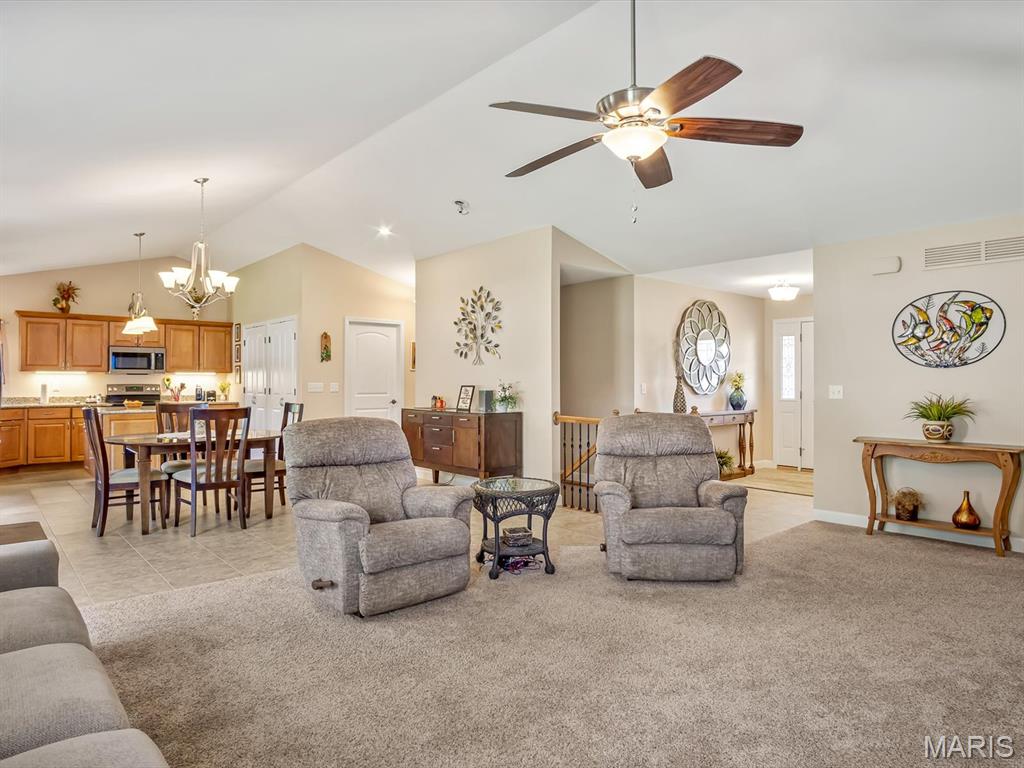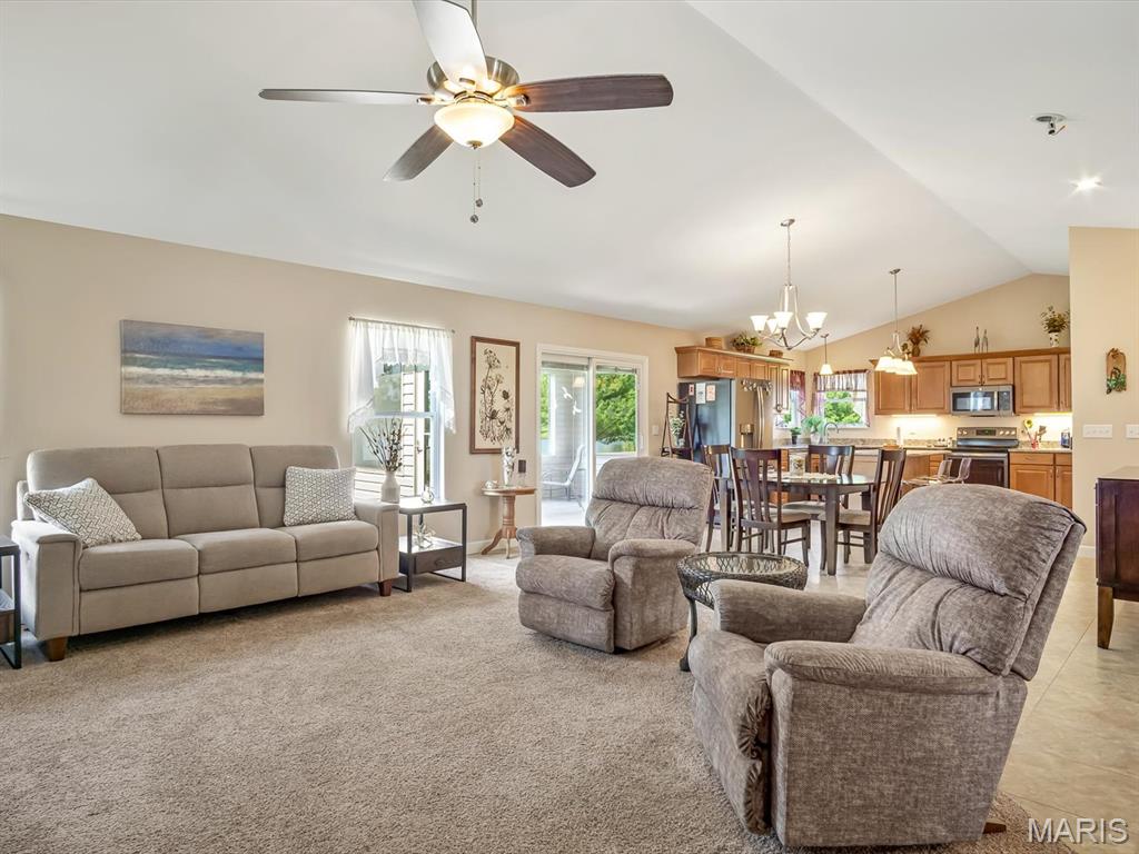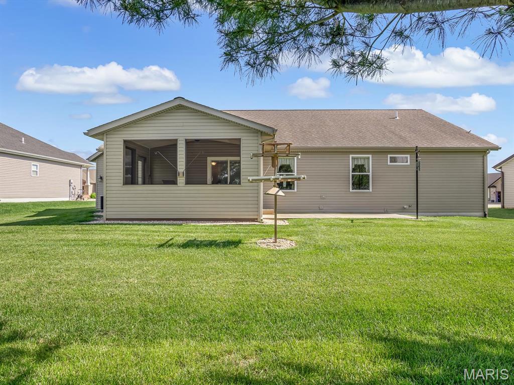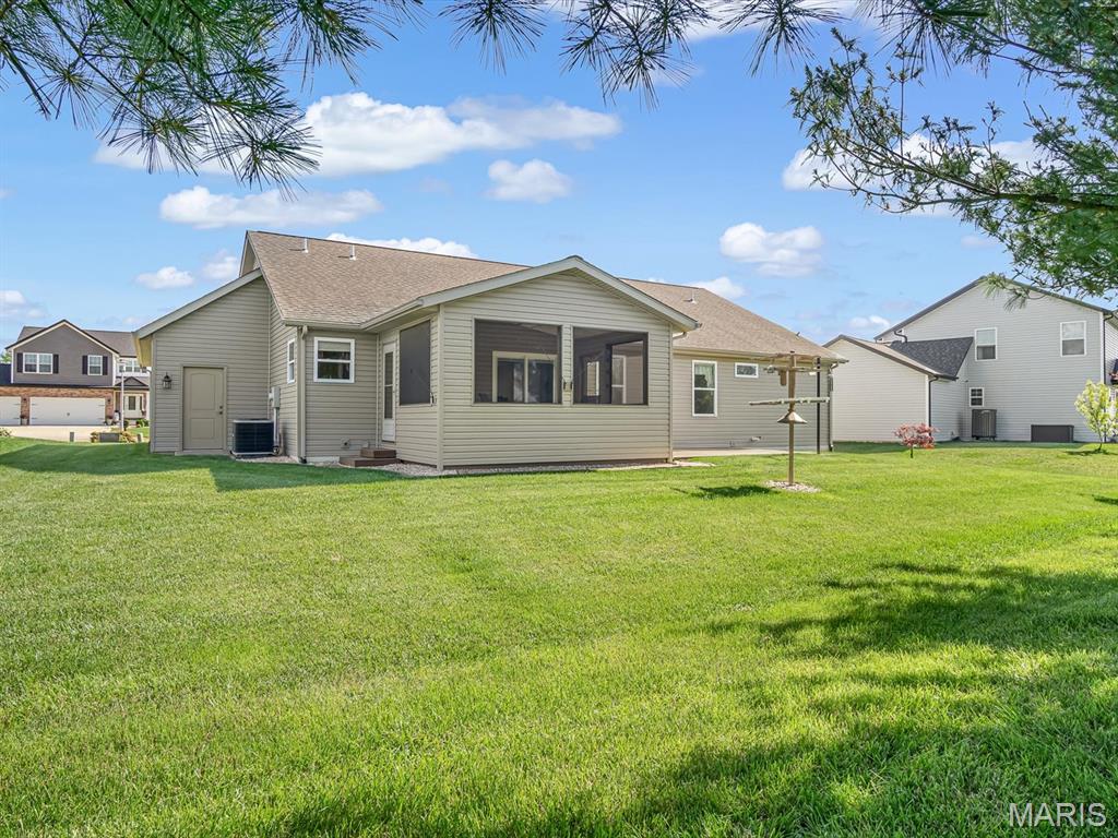 Located in the desirable Creekside Estates subdivision, this one-owner home built by Vogt Builders in 2017 offers quality construction, an ideal location, and an incredible price. This custom one-story ranch features an open floor plan with three spacious bedrooms and two full bathrooms. The heart of the home is the beautifully designed kitchen, complete with a center island, quartz countertops, stainless steel appliances, and a serene lake view. The kitchen flows seamlessly into the main living areas, making it ideal for everyday living and entertaining. You'll also find main-level laundry for added convenience and a three-car garage for ample storage. Step into the attached sunroom and enjoy peaceful mornings or relaxing evenings overlooking the water. The full unfinished basement includes an egress window and a rough-in for a future bathroom, offering endless potential for additional living space. As an added bonus, this home can be sold almost fully furnished, making your move-in process even easier.