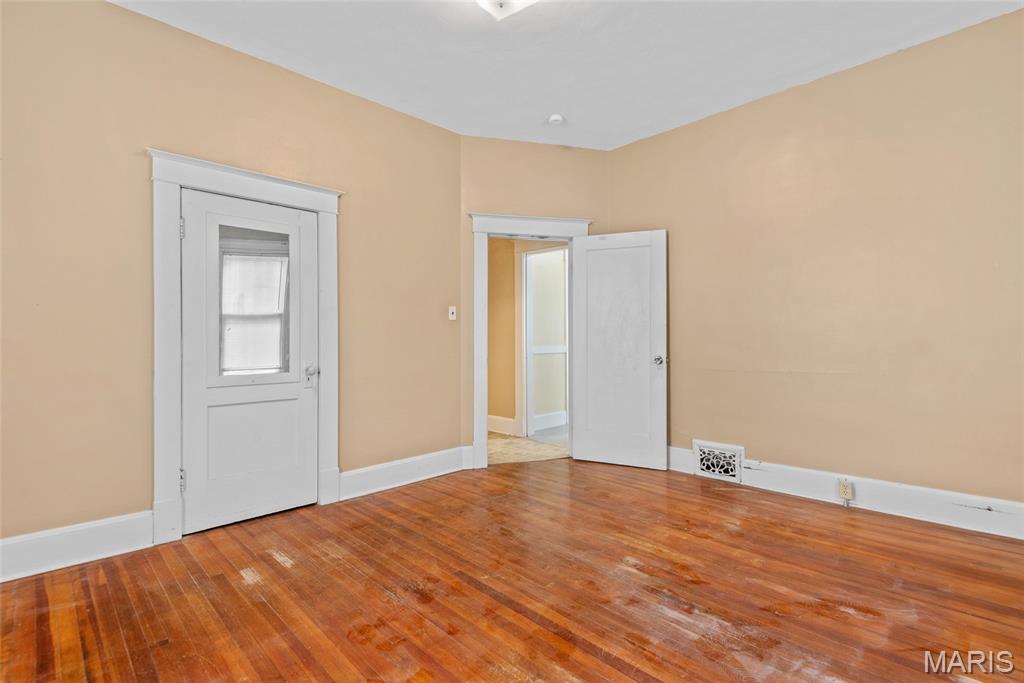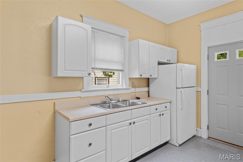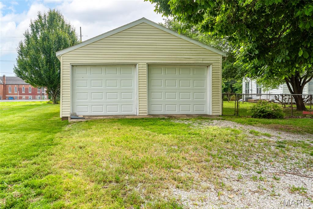 SINGLE FAMILY HOME OR MULTI-FAMILY RESIDENCE - This home has been rented as a two family home with a one bedroom, living room, kitchen (stove & refrigerator included) & bath upstairs. You have a private entrance to upstairs from the outside staircase or if made back into a single family home, there is an entry to upstairs from the main floor hallway. The main floor residence has large rooms and high ceilings. There is a large living room, dining room, two spacious bedrooms with wood floors and a recently remodeled full bath. You will love the cheerful, large eat in kitchen with partial new cabinets and electric stove & refrigerator that stay. Full basement has lots of storage and has a great workshop room. Nice, private fenced backyard leads to a two car garage (two openers) with a entrance from back alley. Apt. upstairs is rented & needs notice to show. Close to shopping, restaurants, bus line and interstates. HOME BEING SOLD "AS IS". Seller will provide list of city inspection repairs needed. NOTE: MUST HAVE 2ND APPT. TO SEE UPSTAIRS APT. Need notice to show.