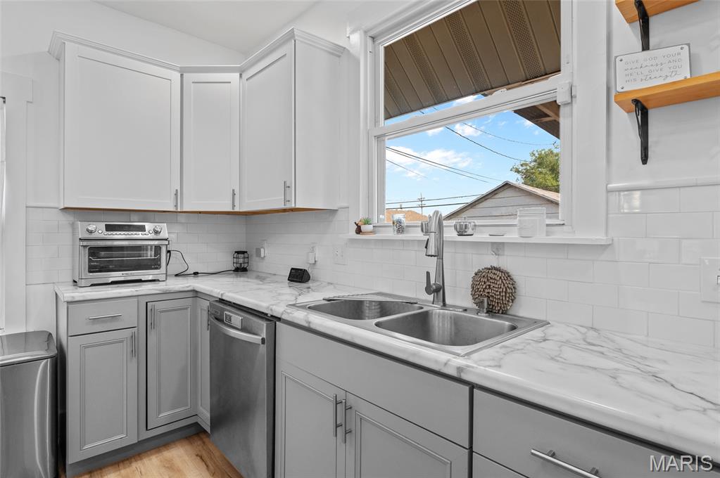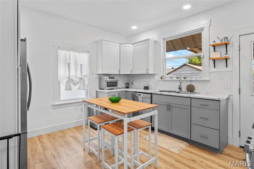 Looking for lots of space to grow? This turn of the century home is much larger than it appears. Step into the glass enclosed porch for a nice sitting area or relax in the spacious living room w/decorative fireplace. The formal dining is adjacent to the beautiful, fully renovated kitchen which includes stainless steel appliances. There is a main floor bedroom & large half bath to complete the main floor. Upstairs are two very large bedrooms & the updated full bath. The basement is partially finished with a rec room & bonus room along with lots of storage space. Step outside to the fenced backyard with a pad & electric for future hot tub connection. Lots of off street parking is available with a carport for parking & direct alley access! New Roof & Siding - 2023, New furnace - 2016, new water heater - 2012, & all new windows in '04!