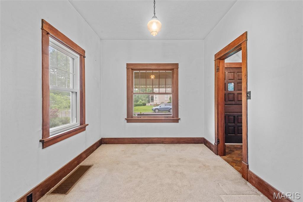 This Stately bungalow is on a large corner lot in Marine. Walk up the sidewalk to the beautiful covered porch with the original front door. The main floor offers so much potential. Hardwoods are under the carpets & beautiful original solids interior doors, baseboards & trim. The upstairs is a large open area & can be separated into a couple of bedrooms, a full bath, & 4 large closets. The lower level includes a family room with a w/large bar, recreation room, extra finished area (was currently used for a beauty shop & includes water), bathroom, large laundry & unfinished area. The garage is detached & is an oversized 2-car garage and consists of a 1/2 bath. ( hasn't been used in quite a while). The corner yard is large & offers a ton of trees & landscaping.