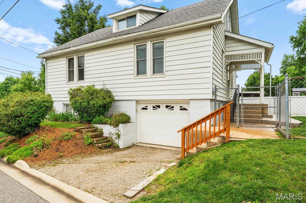 Charming 1.5-story home on a corner lot in the heart of Waterloo! This 3-bedroom, 1.5-bath gem, built in 1948, offers classic character with thoughtful updates throughout. Step into the welcoming foyer, leading to a spacious living room and separate dining room filled w/natural light—perfect for entertaining without feeling crowded. Noteworthy is windows are double hung for easy cleaning to! Here is an option to think about. Prefer another main-floor primary suite? The dining room could easily be converted into a large bedroom with closet space. The beautifully updated eat-in kitchen (2014) features ample custom cabinetry with crown molding, granite countertops, stainless steel appliances, and plenty of space for family gatherings. The main-floor full bath was tastefully renovated in 2020 with new walls, a tiled shower/tub, updated vanity, modern lighting, & flooring. Upstairs you’ll find two generously sized bedrooms and a convenient half bath. The lower level includes a workshop area, shower, storage room (with freezer to stay), and an extra-deep 1-car garage. Enjoy evenings outdoors on the stamped 17x18.5 patio, and keep things tidy with the 10x10 painted and shingled storage shed complete with loft. Additional 2 parking spots in the alley and off-street parking, plus a fenced yard with three entry gates and a vehicle gate. All within walking distance to the fantastic uptown amenities of Waterloo. Home is being sold AS IS—don’t miss your opportunity to make it your own!