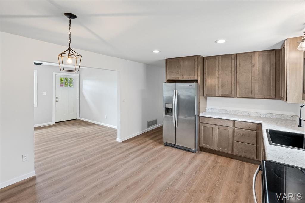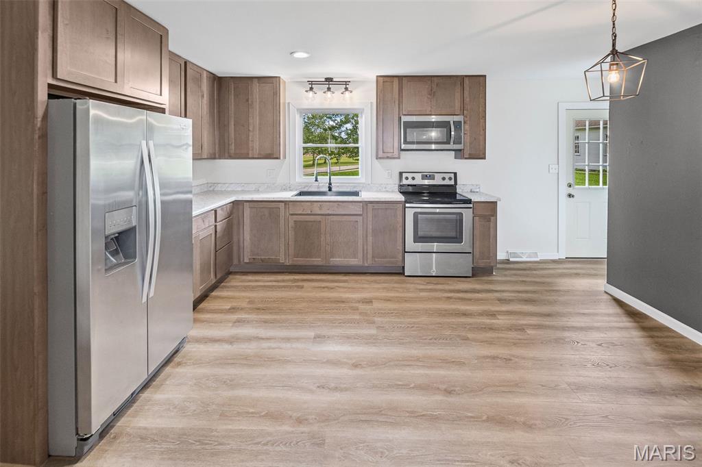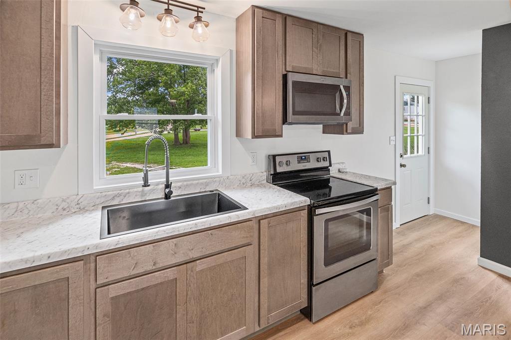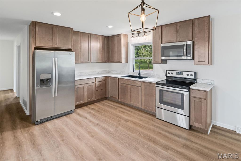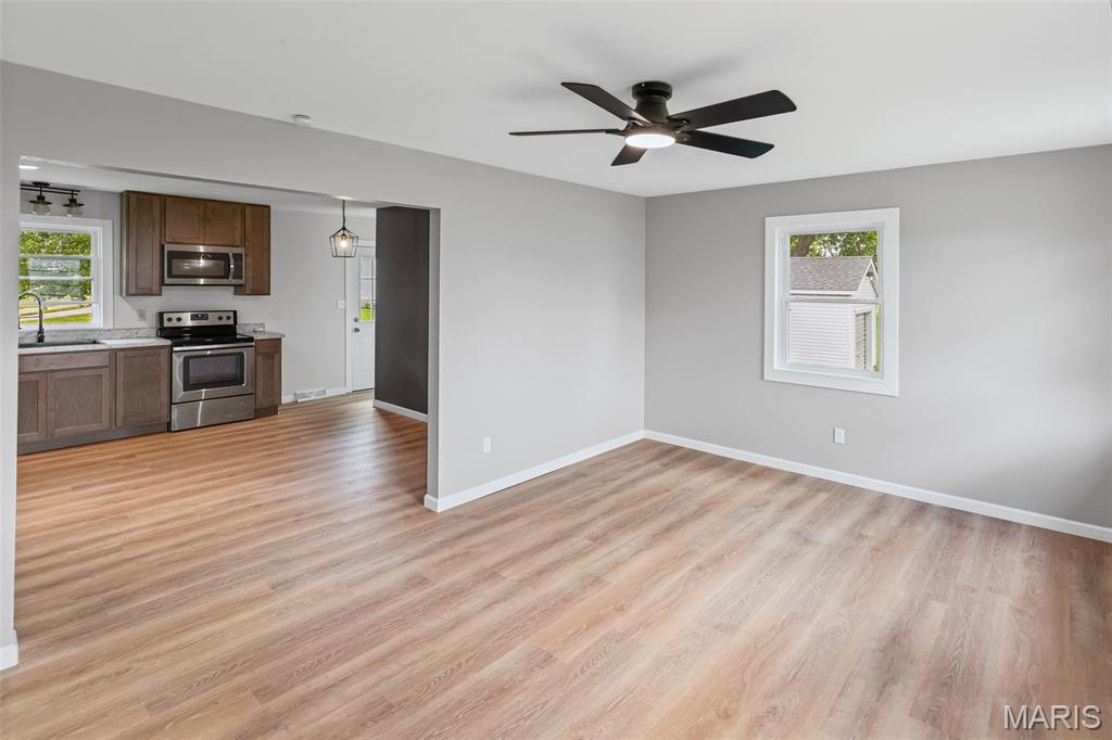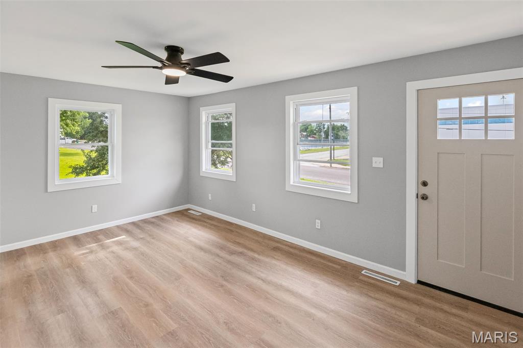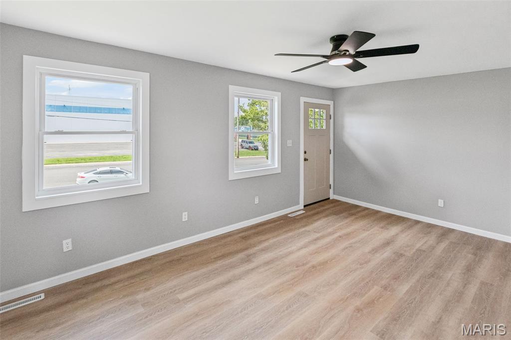 A fresh start for this gorgeous property conveniently located in the heart of Jerseyville. The house sits on nearly a quarter acre lot that offers plenty of space for summer activities this year. There are a number of recent upgrades to mention starting outside with brand new vinyl siding, new gutters, and a large deck addition for entertaining or relaxing. This summer you will be staying cool with the brand new AC unit installed in 2025. Inside you will love walking in to the updated open concept layout, along with the new vinyl plank flooring throughout the entire main level, new baseboards, new vinyl windows, brand new modern kitchen remodel, new stainless steel appliances, and your spacious freshly remodeled bathroom with tiled shower walls. The basement offers tall ceilings and opportunity to add more finished bonus living area, including plumbing rough-in's to install a 2nd bathroom addition if desired. Schedule your private tour today!