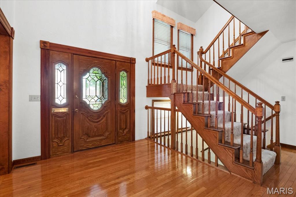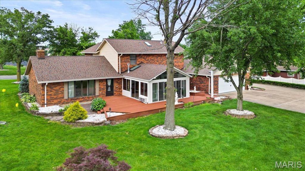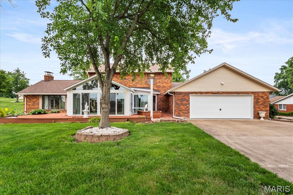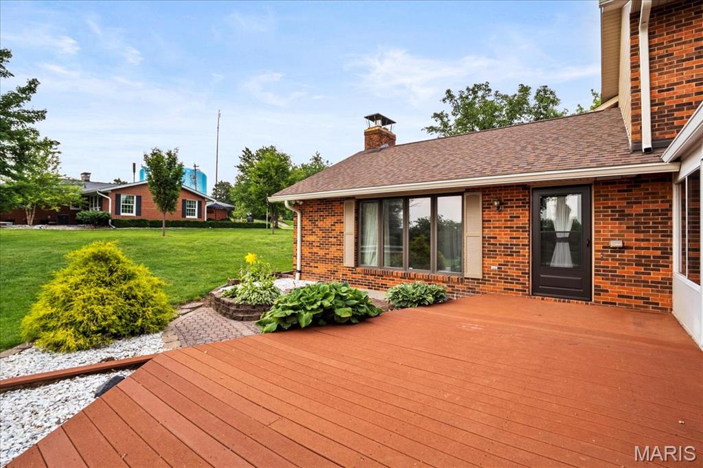 Looking for a special house to create your forever HOME? Now is your chance to be the second owner of this Iconic home with Breathtaking views of downtown Columbia! Nestled on ~1 acre, you will be delighted with the privacy & convenient location 221 Tower Hill Dr has to offer. This charming 1.5 story boast of a primarily brick facade features 4 large bedrooms, 3.5 Baths & 2 car rear entry garage. Unique pebbled sidewalk leading you to the grand entrance is just the beginning of all the special features this home has to offer. Open the door & you will be wowed by the exquisite woodwork & generous room sizes. The main level features ample community space in the eat in kitchen w/loads of cabinets, center island & breakfast area, enormous living room featuring vaulted ceiling, fireplace with built-in shelves & formal dining room. Large, Main level Primary suite has everything you desire. Upstairs you will discover 3 large bedrooms & Full bath. The lower level is partially finished with plenty of space to entertain all your family & friends in the family room with wet bar & rec room. 2 bonus rooms, full bath, 2 storage rooms (one with access to the garage) complete the lower level. Spend lots of evenings enjoying in your sunroom or deck overlooking your serene & private backyard where off in the distance you see the twinkle of the lights on Main St and the Skyline of St. Louis. If you are creative this house is the perfect place to call home!