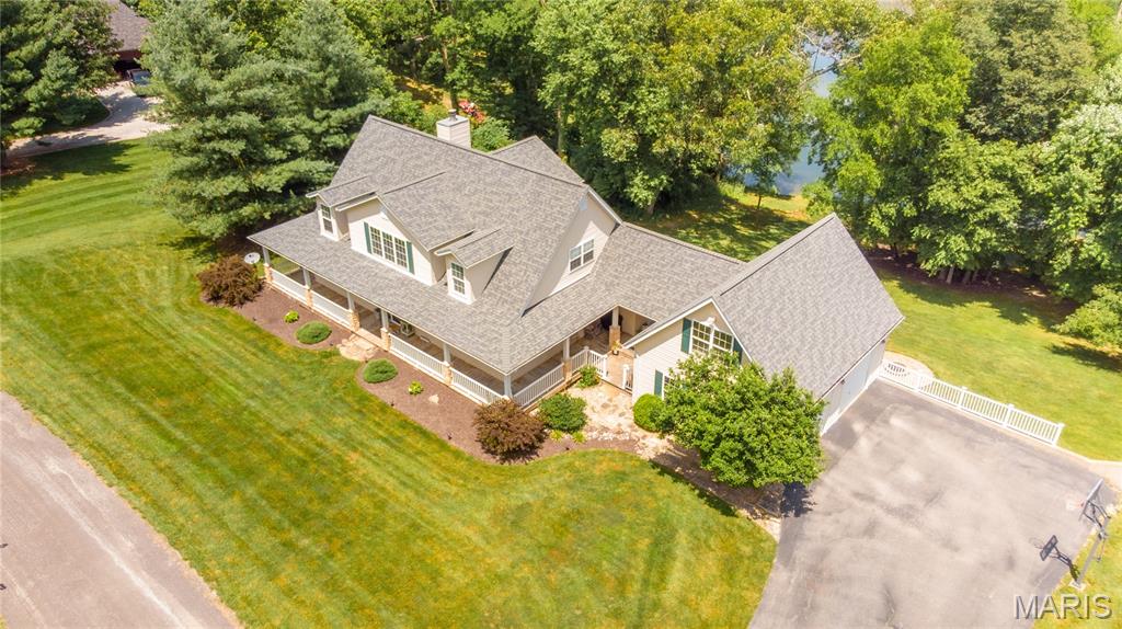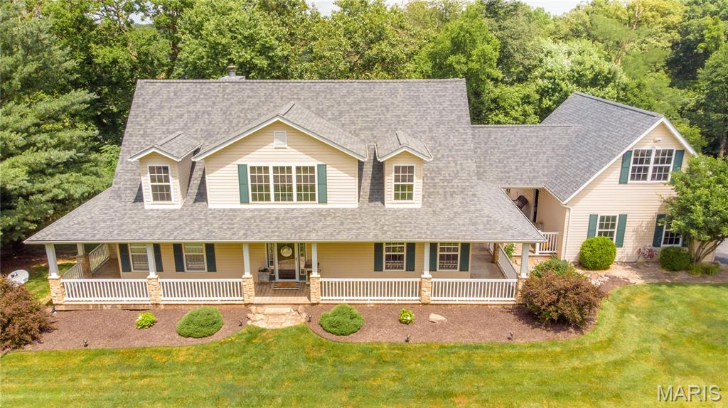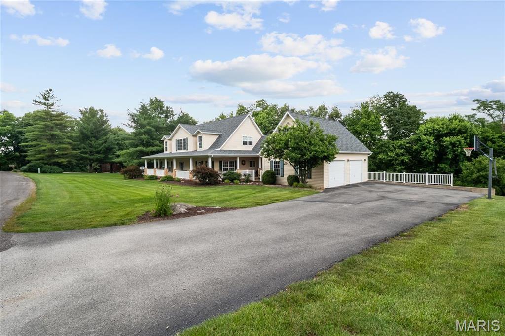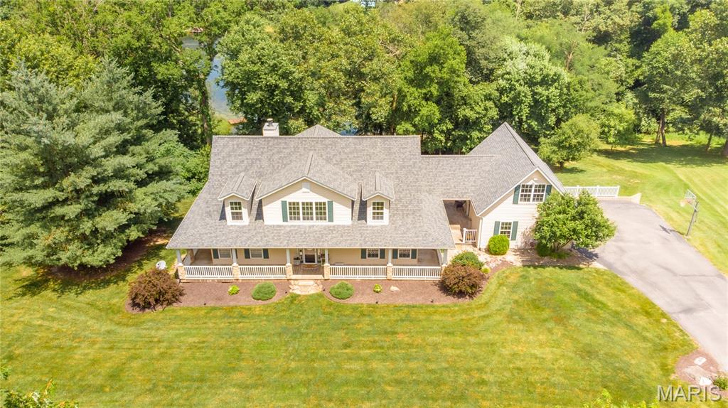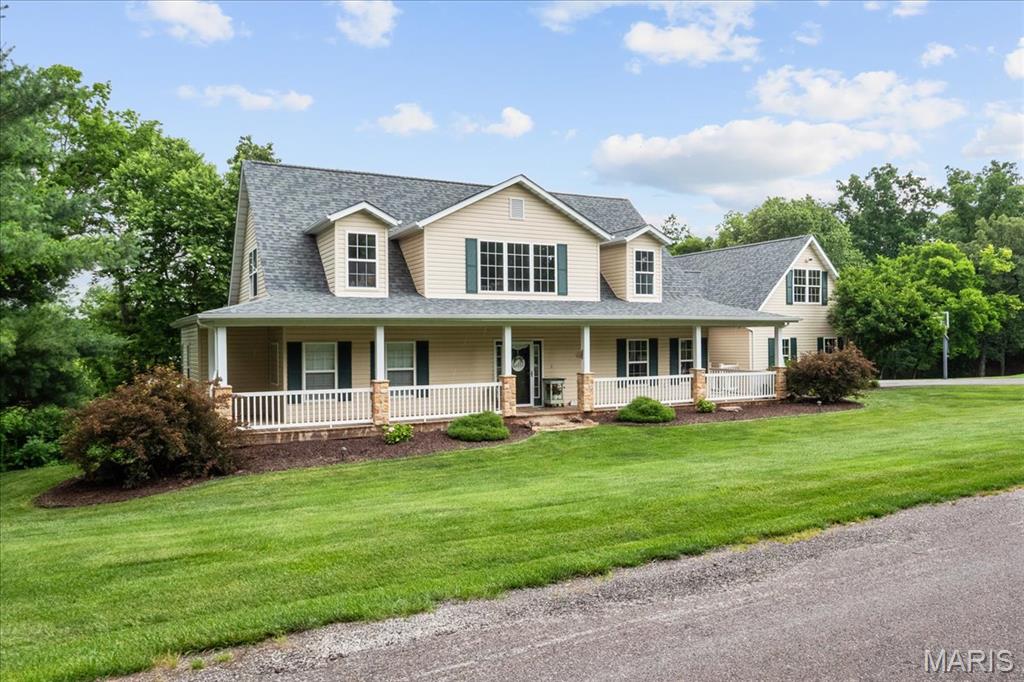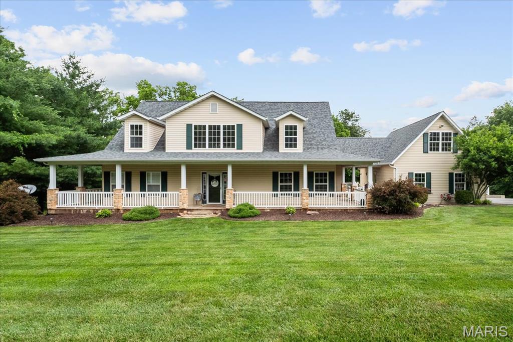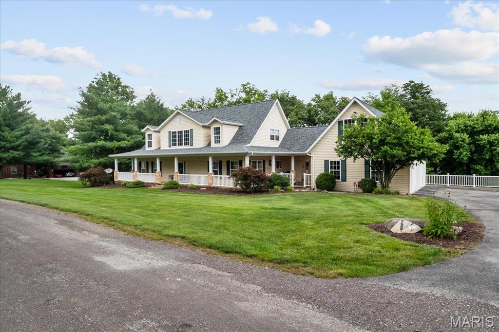 Tucked away on a cul de sac in a country development, with a lake in the back yard on 3.4 acres sits the home of your dreams. Curb appeal galore starting with the wrap around porch! Open the front door to a straight shot of the lake through the large picture window. This floor plan offers the perfect blend of room separation yet open floor plan feel accomplishing just the right amount of wide open space & coziness. Primary Bedroom & ensuite are on the main level as well as the Laundry! Eat in Kitchen w/Island & flows into the Dining room in one direction and the Living Room in the other. Upstairs boasts 2 large bedrooms and a full bathroom as well as a beautiful view of the lake from the balcony. The walk out basement is perfect for entertaining guests the "kitchenette" could be used as it is now or would be perfect for a back bar if desired. Large family room and game room is ideal for hosting parties! Private bedroom & 1/2 bathroom (plumed for a shower) round out the perfect home! This beauty is waiting for you to move right in!