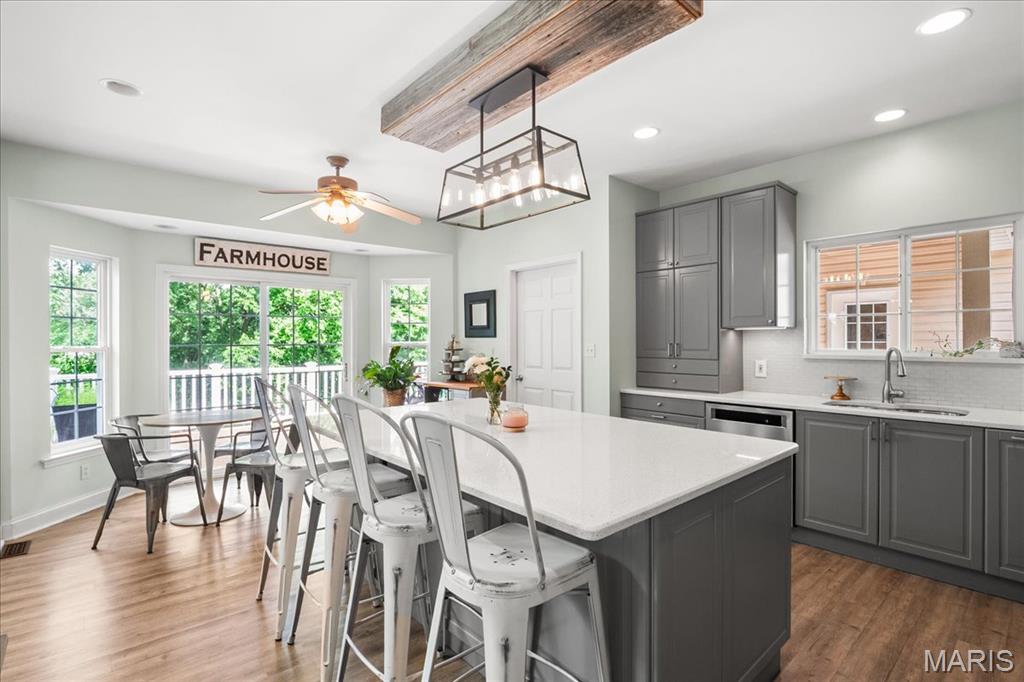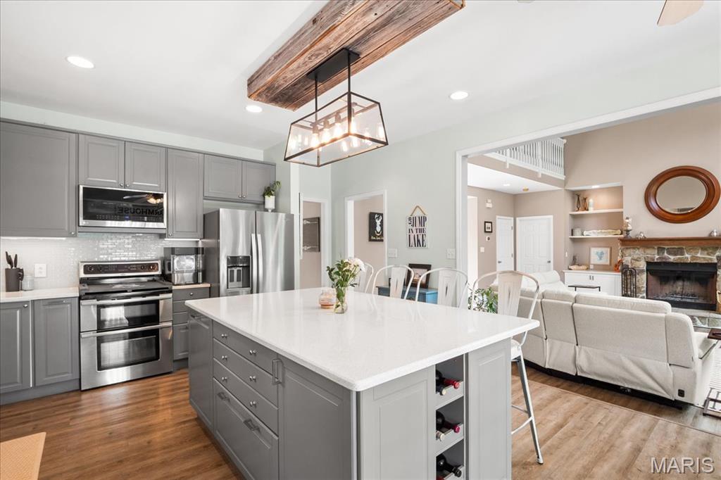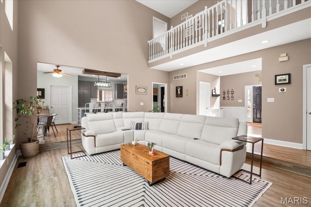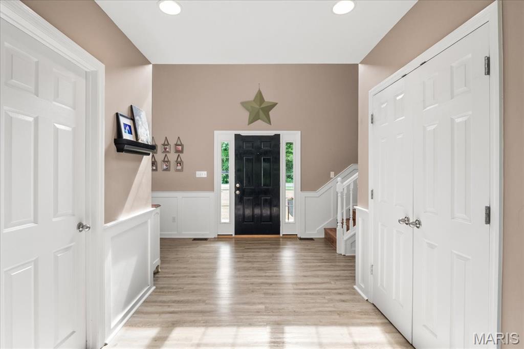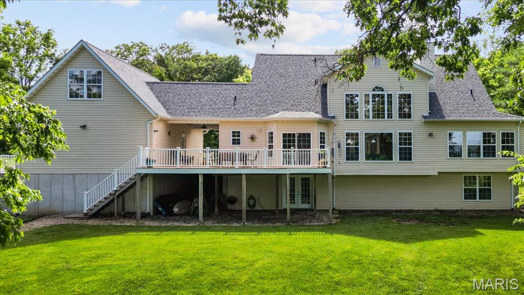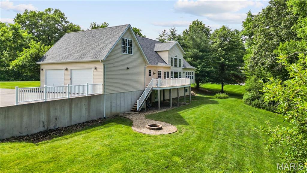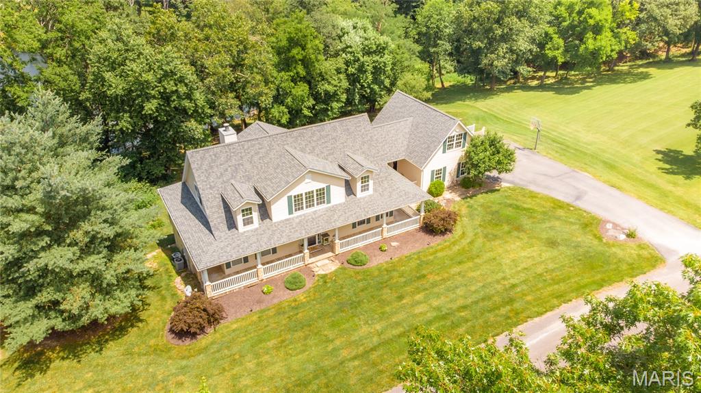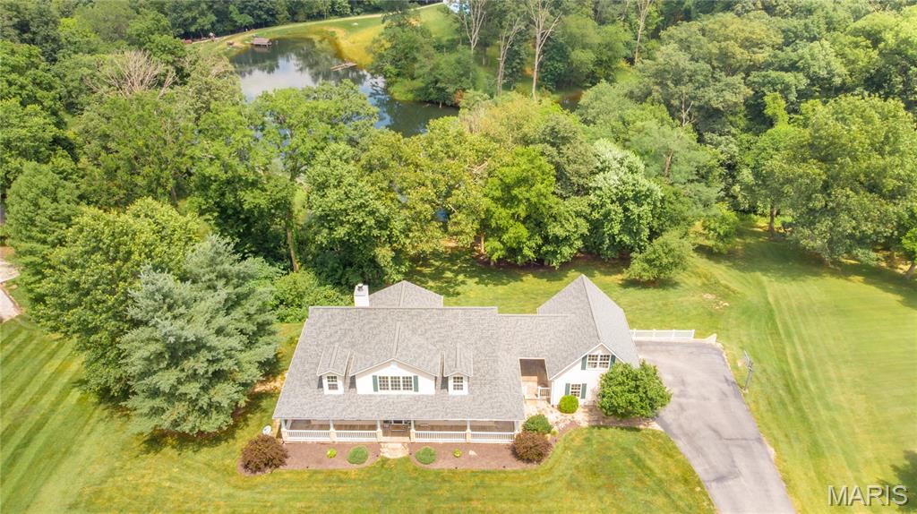 Tucked away on a cul de sac in a country development, with a lake in the back yard on 3.4 acres sits the home of your dreams. Curb appeal galore starting with the wrap around porch! Open the front door to a straight shot of the lake through the large picture window. This floor plan offers the perfect blend of room separation yet open floor plan feel accomplishing just the right amount of wide open space & coziness. Primary Bedroom & ensuite are on the main level as well as the Laundry! Eat in Kitchen w/Island & flows into the Dining room in one direction and the Living Room in the other. Upstairs boasts 2 large bedrooms and a full bathroom as well as a beautiful view of the lake from the balcony. The walk out basement is perfect for entertaining guests the "kitchenette" could be used as it is now or would be perfect for a back bar if desired. Large family room and game room is ideal for hosting parties! Private bedroom & 1/2 bathroom (plumed for a shower) round out the perfect home! This beauty is waiting for you to move right in!