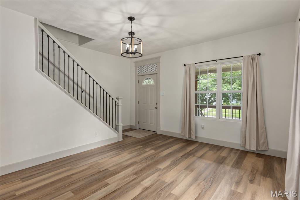 Beautifully Remodeled 4-Bedroom Home in Prime Central Location! Welcome to this fully remodeled 4-bedroom, 1-bath home perfectly situated in the heart of town—just minutes from shopping, dining, and everyday conveniences. Step inside to discover a bright and inviting living room featuring abundant natural light, an open layout, and a charming staircase that flows into a spacious dining area—ideal for family meals and entertaining guests. The stunning kitchen has been completely updated with sleek new cabinets, ample counter space, modern countertops, and stainless steel appliances—perfect for meal prep and hosting. A stylishly renovated bathroom includes a tiled shower and a contemporary vanity. The large primary bedroom on the main level boasts a walk-in closet, while an additional main-floor bedroom offers flexibility for a guest room, office, or nursery. Upstairs, two more generously sized bedrooms provide privacy and comfort for family or guests. Enjoy morning coffee on the welcoming front porch with views of the neighborhood or relax on the back deck overlooking a private backyard—ideal for outdoor living. With its modern updates, central location, and spacious layout, this move-in-ready home is a rare find. Don’t miss your chance to make it yours!