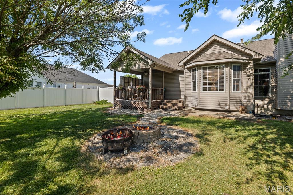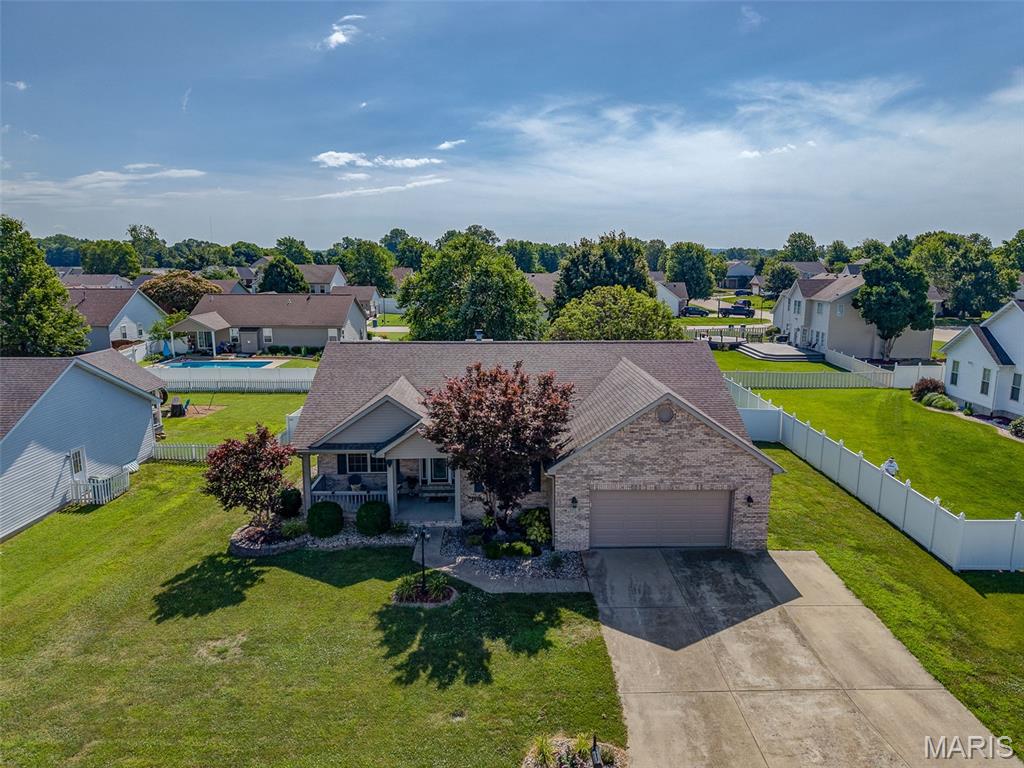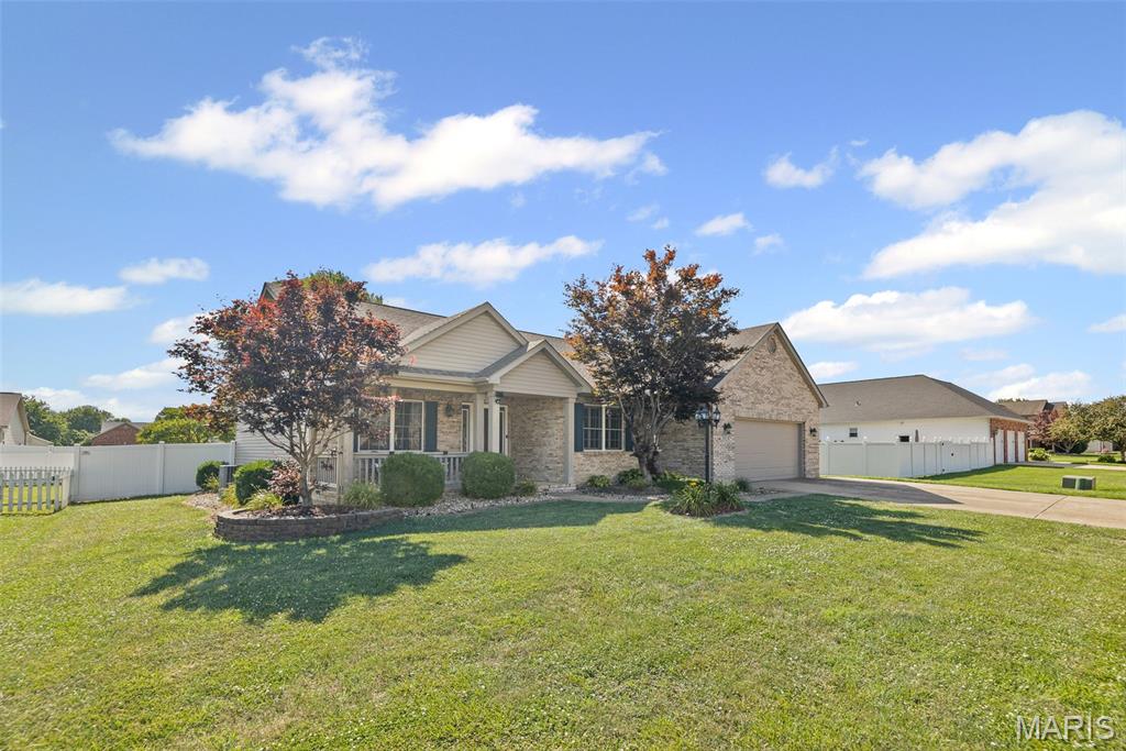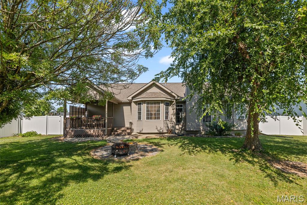The design and style are great starts to a perfect living space. Start with a covered porch and enter into the foyer overlooking a beautiful living room with a cathedral ceiling, fireplace and open staircase to the finished lower level. Now step into the kitchen with a corner sink, lovely cabinets, snack bar plus a breakfast area. Suite dreams is what you will have in this fabulous primary bedroom/bath which features a cathedral ceiling, double vanity, shower plus a separate tub along with a walk-in closet. The 2nd bedroom boasts a window bench and the third bedroom and hall bath add to your perfect usable space. With a lower level family room, bath and game room - you will be able to entertain any sized gathering. Now step outside from the kitchen area to a covered deck with a ceiling fan and a fire pit plus a fenced yard. The possibilities are endless in this beautiful ranch home with a 2 car garage and finished basement along with a great location. Just minutes from highway access but tucked into a lovely subdivision.