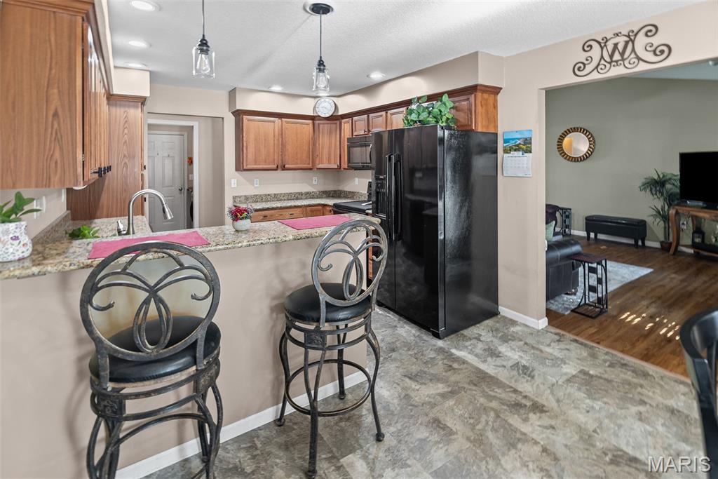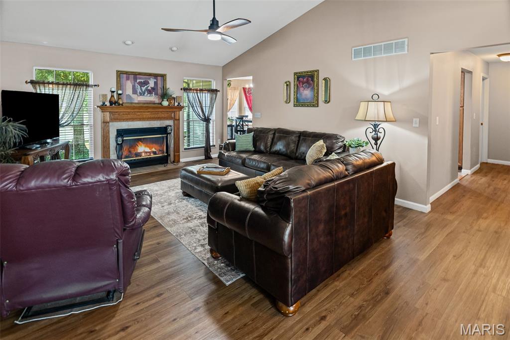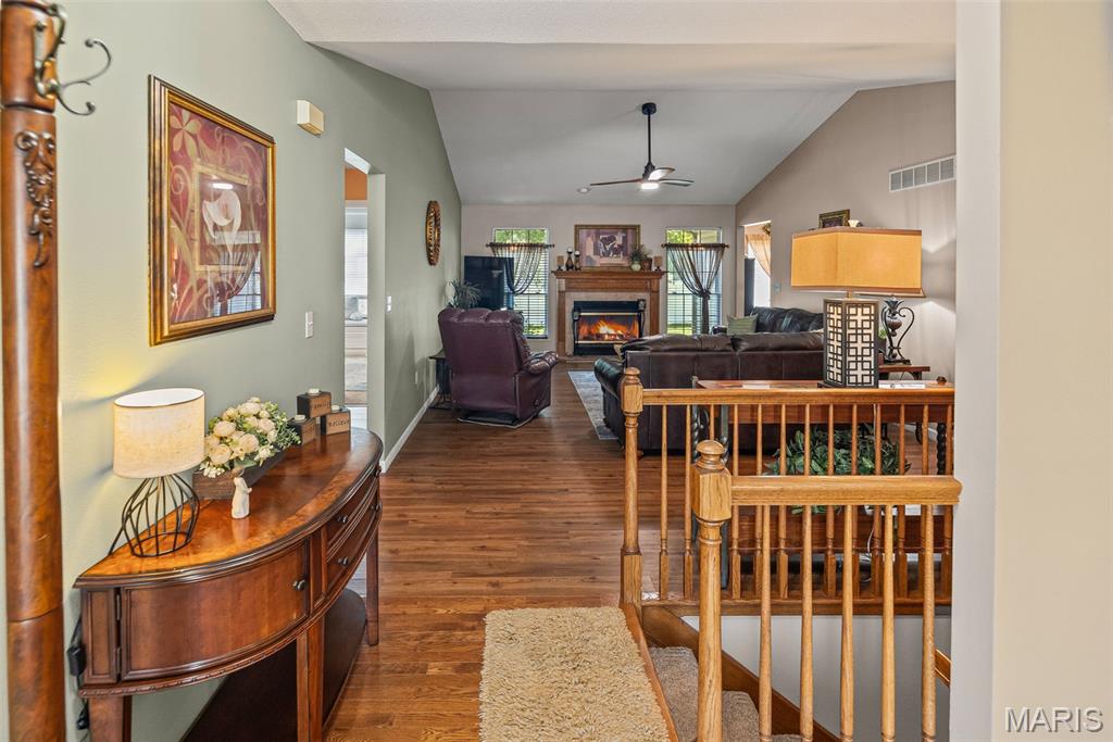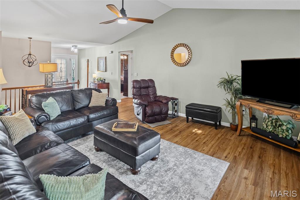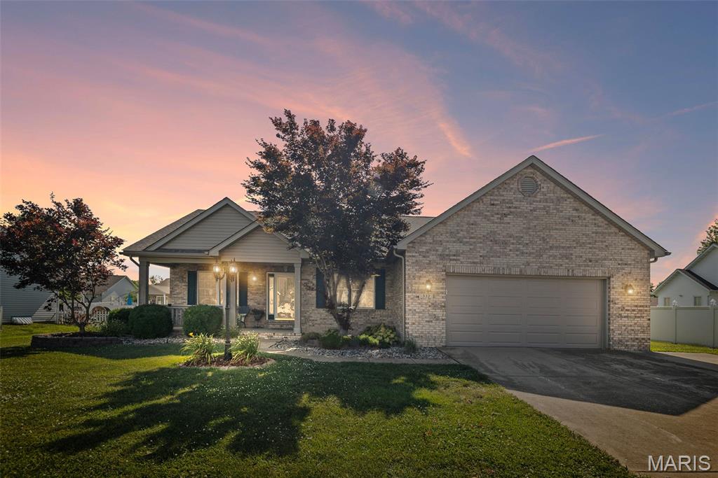The design and style are great starts to a perfect living space. Start with a covered porch and enter into the foyer overlooking a beautiful living room with a cathedral ceiling, fireplace and open staircase to the finished lower level. Now step into the kitchen with a corner sink, lovely cabinets, snack bar plus a breakfast area. Suite dreams is what you will have in this fabulous primary bedroom/bath which features a cathedral ceiling, double vanity, shower plus a separate tub along with a walk-in closet. The 2nd bedroom boasts a window bench and the third bedroom and hall bath add to your perfect usable space. With a lower level family room, bath and game room - you will be able to entertain any sized gathering. Now step outside from the kitchen area to a covered deck with a ceiling fan and a fire pit plus a fenced yard. The possibilities are endless in this beautiful ranch home with a 2 car garage and finished basement along with a great location. Just minutes from highway access but tucked into a lovely subdivision.