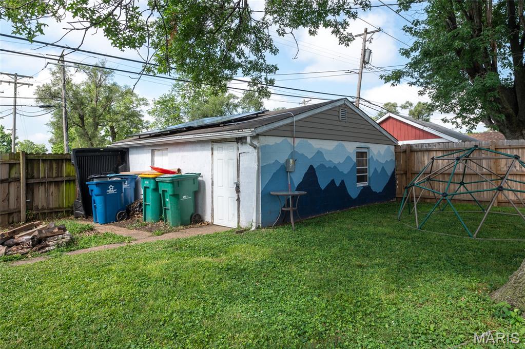 Cozy Brick Bungalow – Move-In Ready! This charming 2-bedroom, 1-bathroom brick home has passed city inspections and is ready for its new owner! Whether you're downsizing or looking for a solid investment property, this home checks all the boxes. Step into a sun-filled family room with refinished hardwood floors and plenty of natural light. The remodeled bathroom boasts a newer walk-in shower, updated fixtures, and ceramic tile flooring. The lower level includes a spacious partially finished living area, plus an unfinished laundry room and ample storage. Enjoy the outdoors from the covered front and side porches, or relax in the level, fenced yard. A 2-car detached garage with newer vinyl siding is accessible via the alley. Recent updates include a newer HVAC system, roof, water heater, solar panels, plumbing, sump pump, gutter guards and fresh interior paint. Priced to sell—schedule your showing today! Property is being sold as-is. Seller will make no repairs or offer credits/inspections.