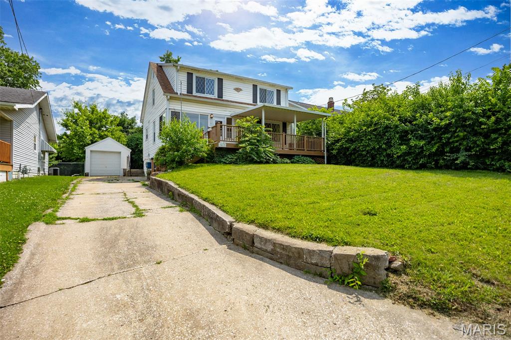 Welcome to this spacious split-level home featuring 3 generously sized bedrooms and 1 functional full bathroom, with a second full bath roughed in and ready for plumbing. Enter through the large covered front porch into a bright living room with beautiful wood floors, and a possible office nook by the entry. The kitchen offers ample cabinets and countertop space, and flows into a separate formal dining room—perfect for entertaining. Upstairs you'll find three large bedrooms, all with wood floors, some walk-in closets, and built-in dressers. A nice landing adds charm at the top of the stairs. The basement is partially finished, offering flexible living or storage space. Enjoy the private backyard from the rear deck—ideal for relaxing or gatherings. This home is being sold as-is with no repairs or concessions offered by the seller. With its generous square footage and layout potential, this property is priced to sell and ready for your personal touch!