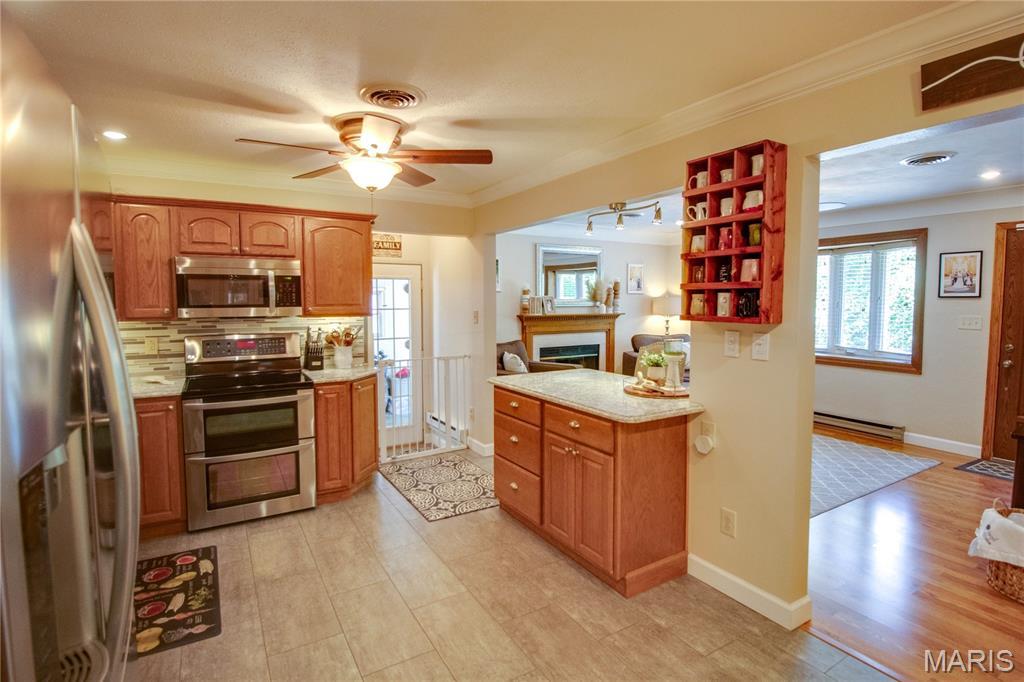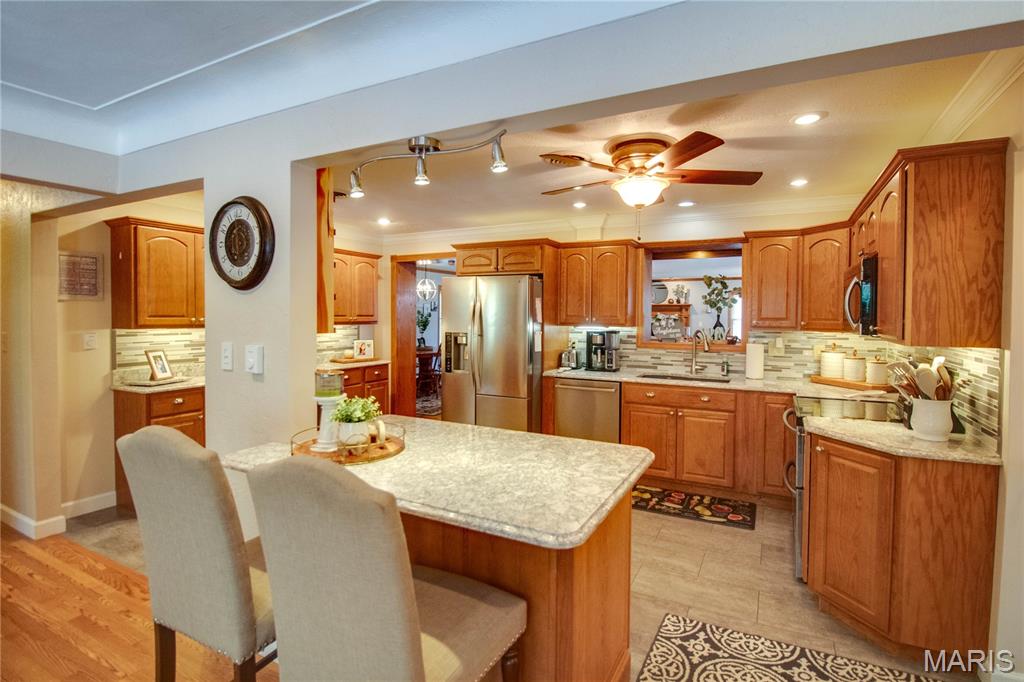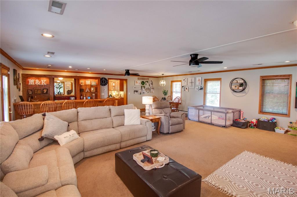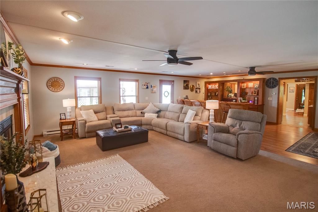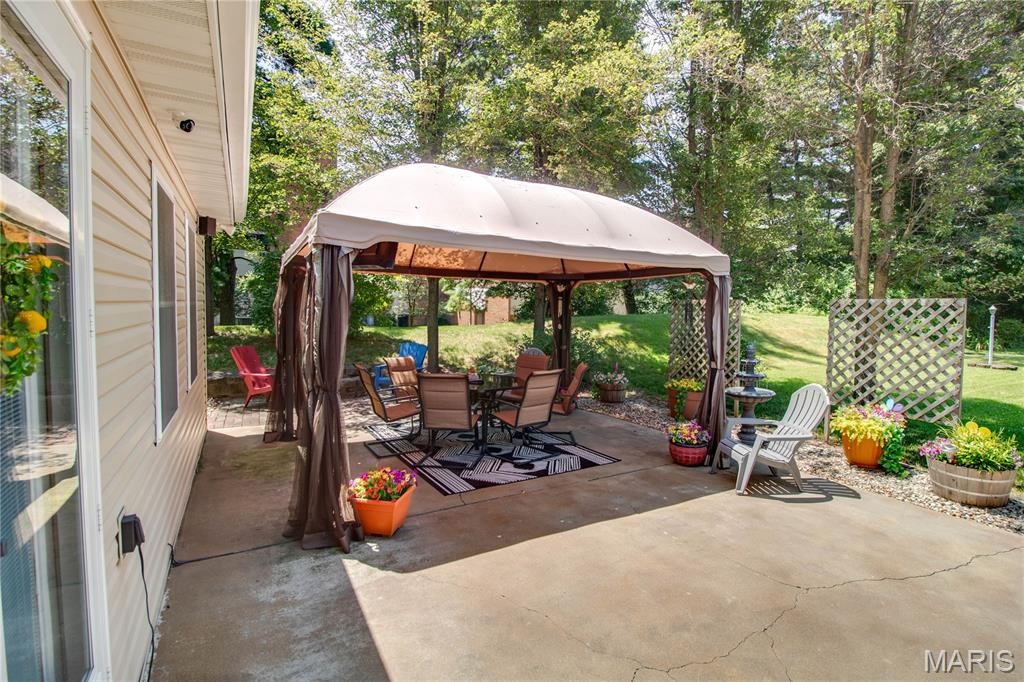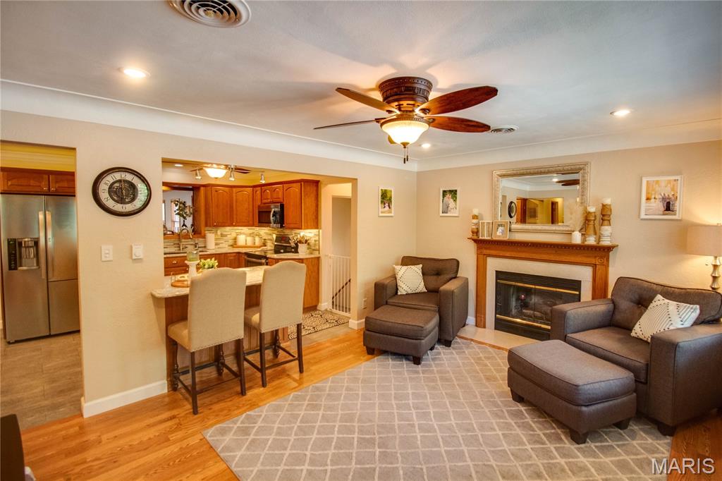This residence has been meticulously maintained and has received numerous updates over the last several years. As you step inside, you will enter the front living room with hardwood floors and a fireplace which sits adjacent to the kitchen. The kitchen boasts stainless steel appliances (which will stay), solid oak cabinetry, under-cabinet lighting, a breakfast bar, and quartz countertops. Down the hallway from the kitchen sits 3 main level bedrooms, and a beautiful full bath with a tiled bath/shower combo. All interior doors have been replaced and are solid oak. In 2006, a massive addition was completed on the back of the house which is perfect for entertaining. This large open room is currently set up with a dining area and has a full bar/wet bar with Brazilian cherry countertops. From there, you will transition into the spacious carpeted family room with a wood burning fireplace. A full finished basement with a bonus room (currently being used as a bedroom) is present with an attached full bath. The outside of the residence has a nice concrete patio that is perfect for grilling and relaxing with a large gazebo for added shade and comfort. Gutter helmets have been installed for additional ease of maintenance. An oversized one-car attached garage sits adjacent to the kitchen with an additional concrete floor storage shed. The hard-wired surveillance system will be included in the sale. Set your appointment before this place is gone!