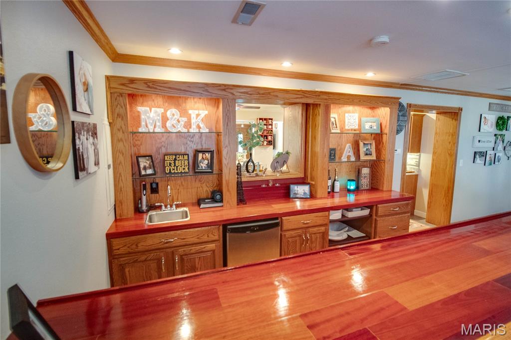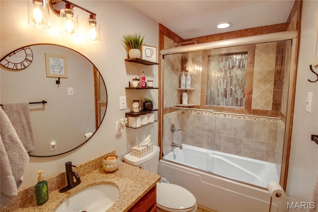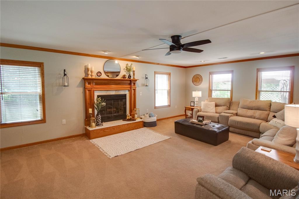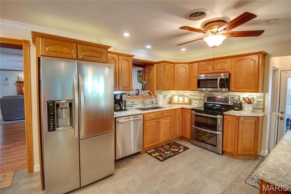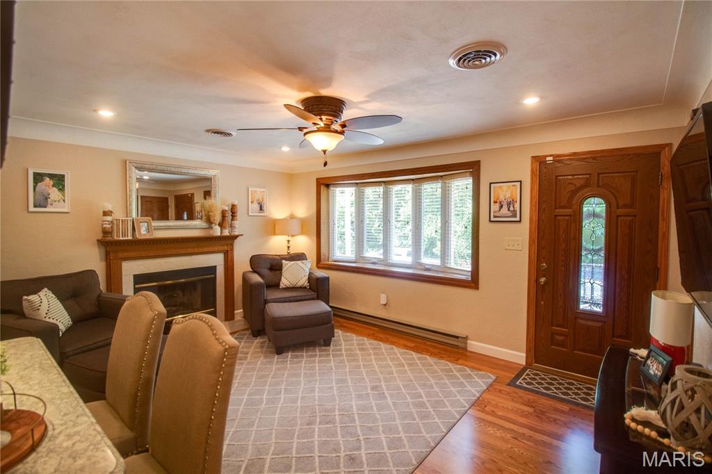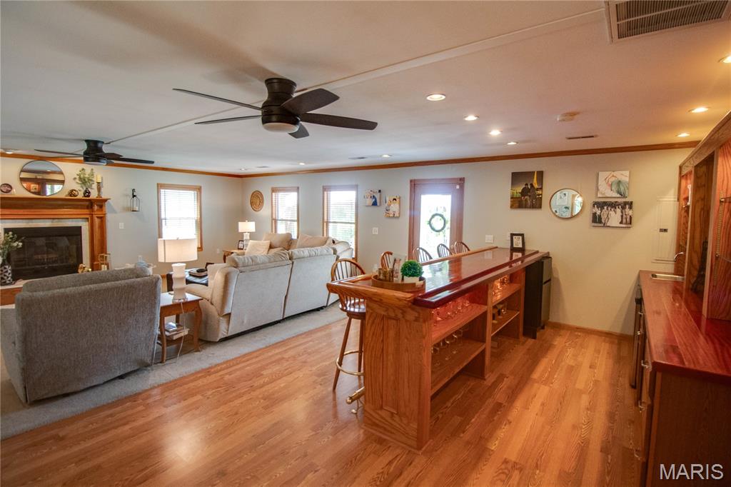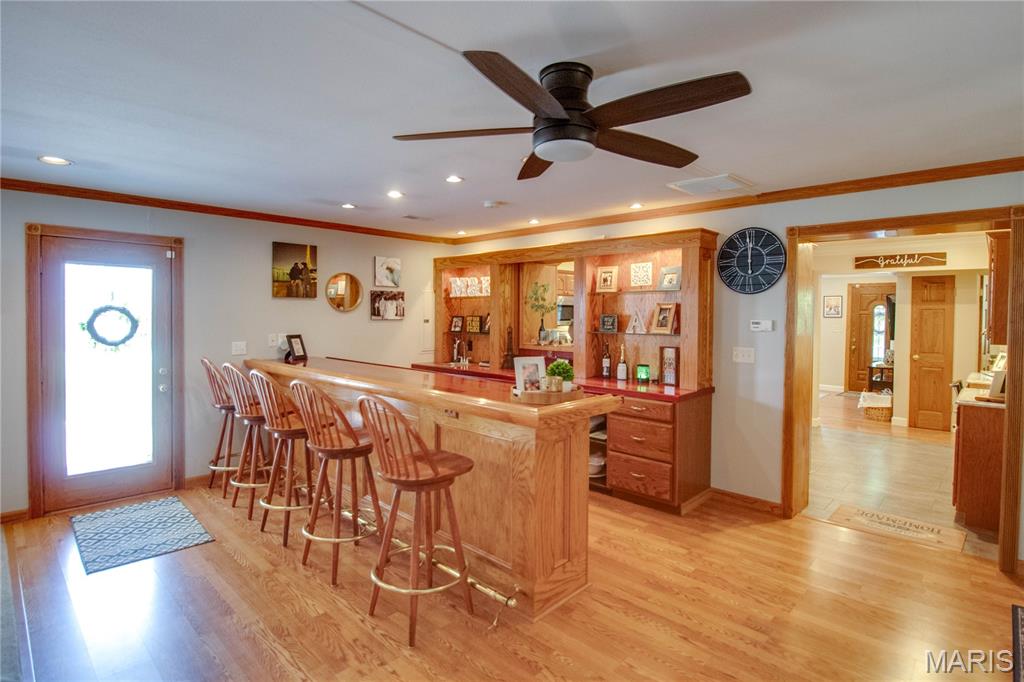 This residence has been meticulously maintained and has received numerous updates over the last several years. As you step inside, you will enter the front living room with hardwood floors and a fireplace which sits adjacent to the kitchen. The kitchen boasts stainless steel appliances (which will stay), solid oak cabinetry, under-cabinet lighting, a breakfast bar, and quartz countertops. Down the hallway from the kitchen sits 3 main level bedrooms, and a beautiful full bath with a tiled bath/shower combo. All interior doors have been replaced and are solid oak. In 2006, a massive addition was completed on the back of the house which is perfect for entertaining. This large open room is currently set up with a dining area and has a full bar/wet bar with Brazilian cherry countertops. From there, you will transition into the spacious carpeted family room with a wood burning fireplace. A full finished basement with a bonus room (currently being used as a bedroom) is present with an attached full bath. The outside of the residence has a nice concrete patio that is perfect for grilling and relaxing with a large gazebo for added shade and comfort. Gutter helmets have been installed for additional ease of maintenance. An oversized one-car attached garage sits adjacent to the kitchen with an additional concrete floor storage shed. The hard-wired surveillance system will be included in the sale. Set your appointment before this place is gone!