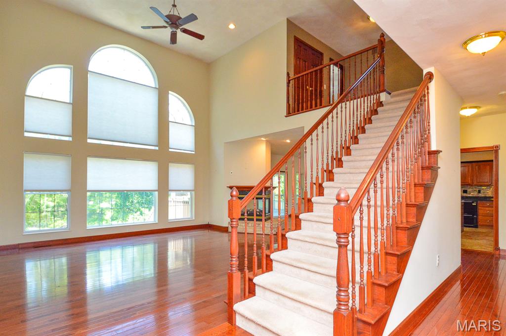Pride of ownership is evident in this REMARKABLE Fox Mill home. 5 bedrooms and 5 baths provide lots of room to spread out, with the main gathering spaces big enough for everyone to be comfortable together. Beautiful HARDWOOD floors flow throughout the main floor, with ceramic tile in the bathrooms and kitchen. You can plan to work from home in the private office area with French Doors. The SOARING 2 story living room features a massive wall of windows and a 2-sided fireplace. Kitchen offers granite counter tops, double oven, beverage fridge, and a huge center island with gas stove top. Spacious main floor primary suite boasts a jetted tub, separate shower, and lots of closet space. Upper level has 3 bedrooms (one with a private bath), the other two with a jack-n-jill bathroom. The party can be found in the WALK OUT lower level with the large family room/rec room, beautiful wet bar/kitchen area with tons of cabinets, and a KEGERATOR! 5th bedroom and full bath offer an opportunity for an 'in-law' suite too! Loads and loads of unfinished storage, as well as a finished bonus room. Off the kitchen you'll find an impressive 15x20 covered deck with Eze-Breeze enclosure that allows for year round comfort, and a 20x20 stamped concrete pad below, to enjoy the attached grill with dedicated gas connection. Oversized 3 car garage with cabinets & work bench and lots of attic storage too. So many more bells and whistles to appreciate, ask for a complete list.