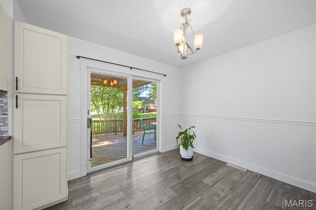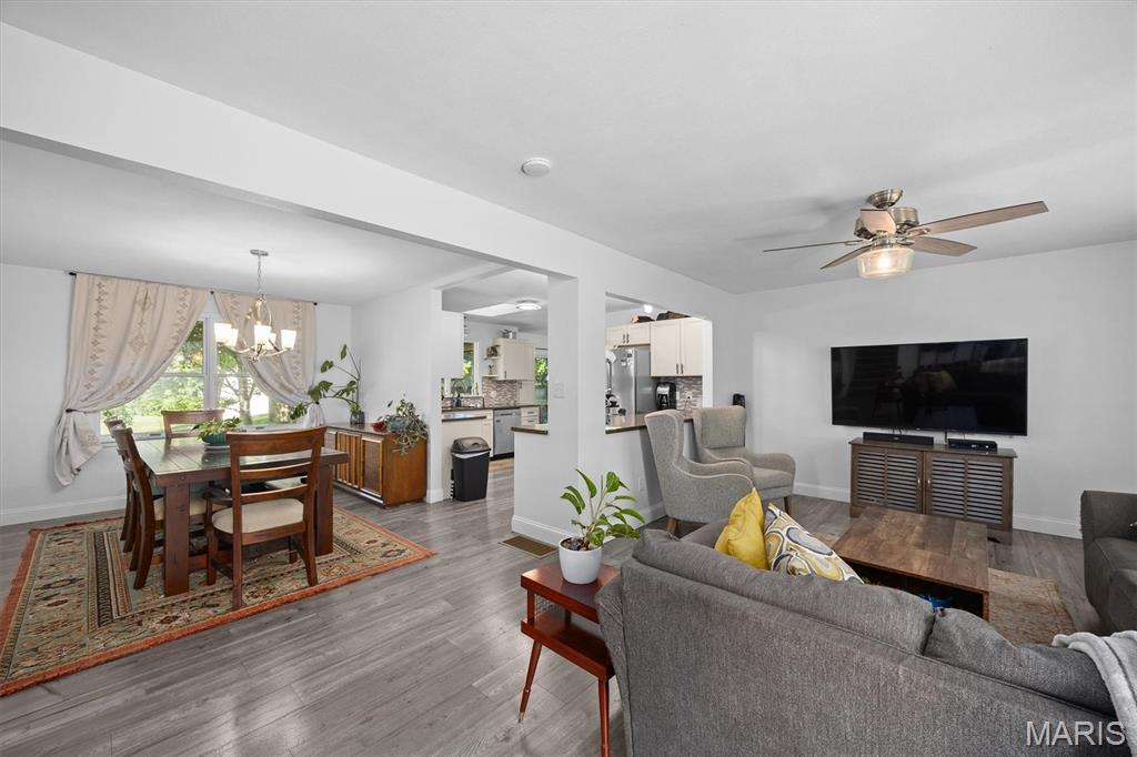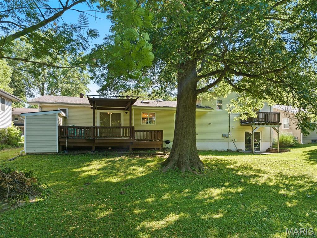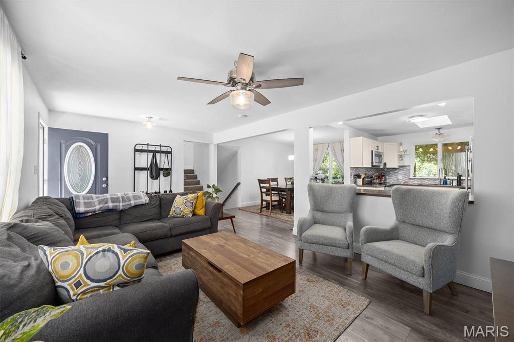 Move-In Ready with Modern Updates! This beautifully updated home offers over 2,000 sq. ft. of total living space, featuring a bright open floor plan ideal for gatherings and everyday comfort. The renovated kitchen shines with new cabinetry, tile backsplash, solid surface countertops, and stainless steel appliances—perfect for cooking and entertaining. Enjoy meals in the formal dining area or cozy breakfast nook that opens to a 22x12 deck overlooking the private backyard. Engineered wood floors run throughout the main spaces, with plush carpet in the bedrooms and new tile in the bathrooms. The primary suite includes a walk-in closet and private balcony access. Downstairs, the spacious family room opens to the backyard via a sliding glass door and includes a 4th bedroom or office and full bath with shower. The oversized garage offers a newer door and opener, utility sink, and a 10x11 workshop or storage room. Nothing to do but move in and enjoy!