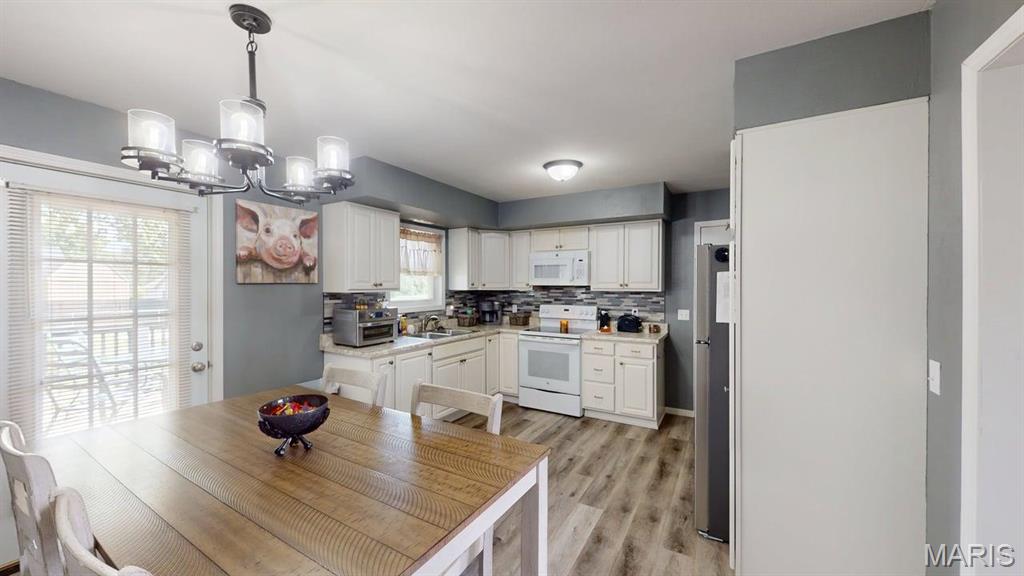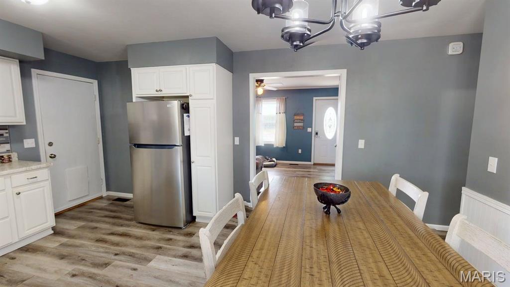 Charming 3 bed, 1 bath home. Home has a light and airy feeling throughout. Roof, furnace and air conditioner were all new in 2017. Hot water heater was new in 2022. Refrigerator, washer and dryer all new in 2025!! The open floor plan allows lots of light to flow through the house and makes entertaining inside and out a joy. Everything is all on one level with no steps to navigate in the home. Plenty of storage in the closets, laundry room, attached garage and storage shed. The backyard is fenced and perfect for pets or kids. You can also enjoy time on the patio or on the attached deck. There is parking out front for 3-4 vehicles and a large yard to enjoy. Located off the beaten path on a dead end road. Bring your pets and projects and enjoy this lovely home for years to come!