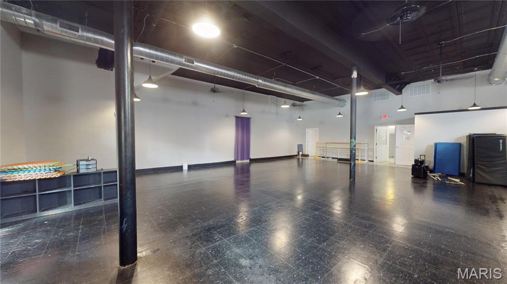 Unleash your vision in the heart of downtown Greenville with this extraordinary live/work opportunity. Behind the historic façade lies nearly 10,000 sq ft of possibility - 3,360 sq ft per floor + a full, dry basement. The first floor dance studio is a wide-open canvas ready to become a gallery, bakery, brewery, boutique, coworking hub, or event venue. With reception, office, break room, storage, & 2 ADA bathrooms, the infrastructure is already in place to support your ideas. In 2021, the property was reborn with modern HVAC, plumbing, electrical, & oversized display windows—designed to highlight your business—while preserving character with tin ceilings & exposed local brick. A brand-new roof followed in 2023, so the heavy lifting is done. Upstairs, a wildly charismatic 3-bed, 2-bath apartment brims with natural light, original wood floors, exposed brick, & bold, maximalist personality. The formal living room overlooks the historic Bond County Courthouse & revitalized town square, & a bonus family room provides ample space for pretty much anything smaller than a pet elephant. Finish out the sad storage room as a 4th bedroom, creative workspace, or more. Live upstairs & build downstairs, or dream bigger: carve out mixed-use space, short-term rentals, or studio suites. This is more than real estate—it’s a launchpad for your next big idea. Bring your passion, your creativity, & your ambition: this property is ready for its next story. (Duplicate listing, see MLS#25062217)