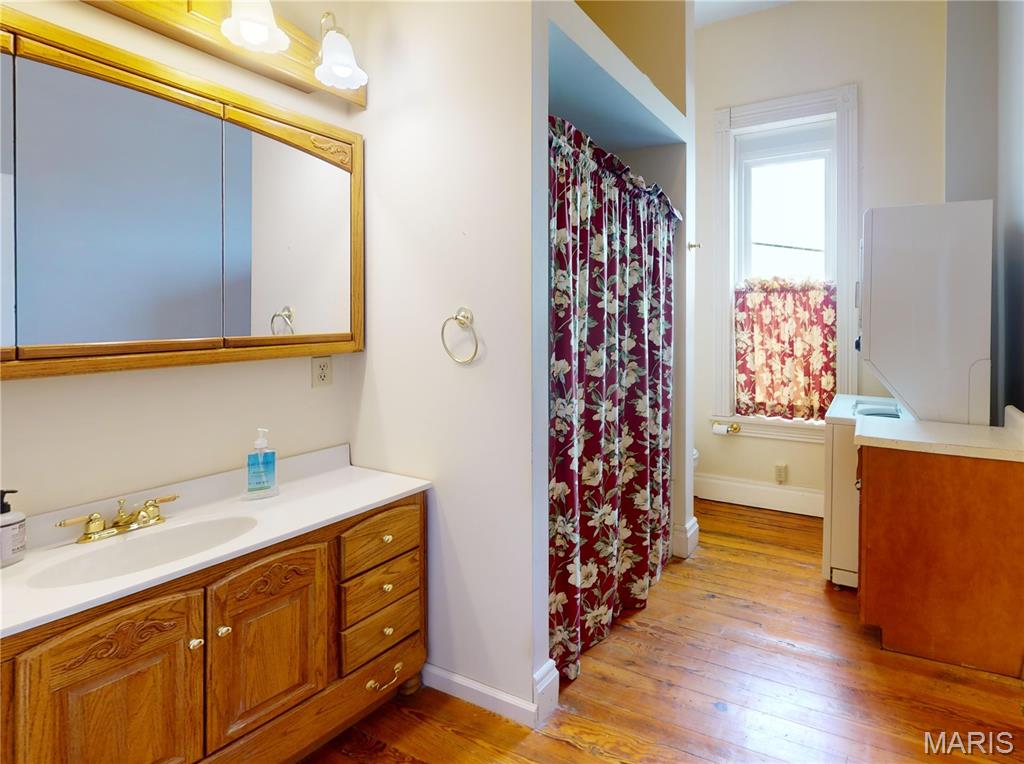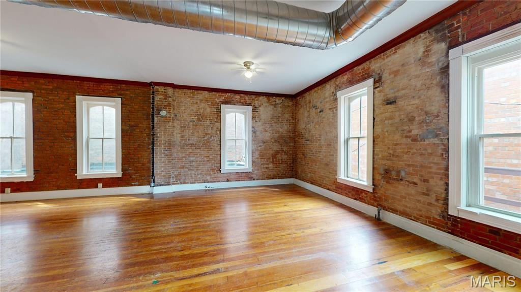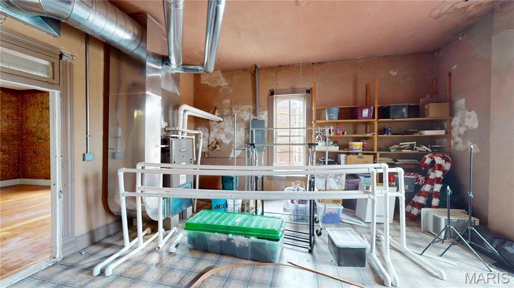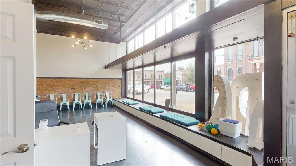 Unleash your vision in the heart of downtown Greenville with this extraordinary live/work opportunity. Behind the historic façade lies nearly 10,000 sq ft of possibility - 3,360 sq ft per floor + a full, dry basement. The first floor dance studio is a wide-open canvas ready to become a gallery, bakery, brewery, boutique, coworking hub, or event venue. With reception, office, break room, storage, & 2 ADA bathrooms, the infrastructure is already in place to support your ideas. In 2021, the property was reborn with modern HVAC, plumbing, electrical, & oversized display windows—designed to highlight your business—while preserving character with tin ceilings & exposed local brick. A brand-new roof followed in 2023, so the heavy lifting is done. Upstairs, a wildly charismatic 3-bed, 2-bath apartment brims with natural light, original wood floors, exposed brick, & bold, maximalist personality. The formal living room overlooks the historic Bond County Courthouse & revitalized town square, & a bonus family room provides ample space for pretty much anything smaller than a pet elephant. Finish out the sad storage room as a 4th bedroom, creative workspace, or more. Live upstairs & build downstairs, or dream bigger: carve out mixed-use space, short-term rentals, or studio suites. This is more than real estate—it’s a launchpad for your next big idea. Bring your passion, your creativity, & your ambition: this property is ready for its next story. (Duplicate listing, see MLS#25061675)