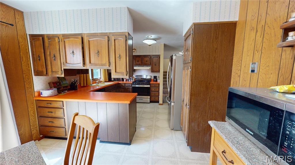 Discover privacy and comfort in this spacious 3-bedroom, 2.5-bath split-level home tucked away at the end of a quiet road. Generous living areas and abundant storage make it both practical and inviting. The main level features a sunlit living room with a large picture window, an open foyer, including a kitchen and dining area complete with a walk-in pantry for everyday convenience. The lower level offers a large family room with an electric fireplace—perfect for cozy gatherings—as well as a second kitchen ideal for entertaining or extended family. Additional highlights include a full laundry room, an attached 2-car heated garage, and a detached 1-car garage with both heating and cooling, perfect for a workshop, studio, or hobby space. A brand-new roof installed in August 2025 provides added peace of mind. Set on a private lot with plenty of room to spread out, this home combines functionality with a peaceful setting, making it a rare find.