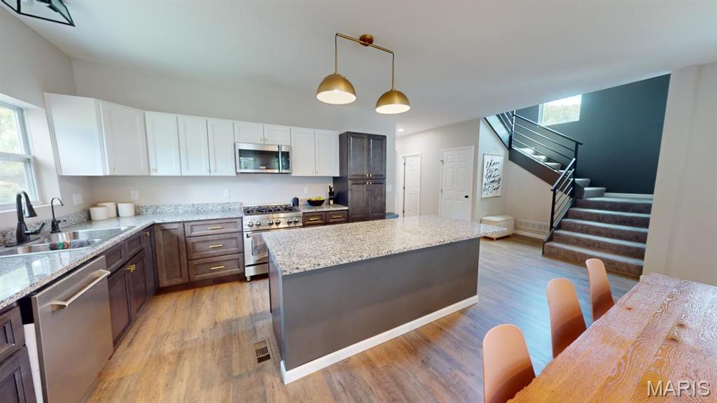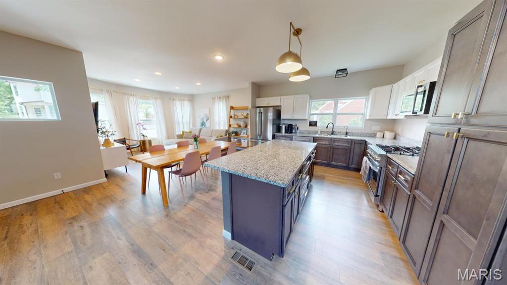 This 2500 sf home was COMPLETELY REMODELED down to the studs in 2022 giving you a totally updated home with an OPEN CONCEPT in an established neighborhood. Roof, wiring, plumbing, HVAC, appliances...it's all less than 5 years old! The new, modern floor plan features an open living/dining/kitchen with granite countertops and stainless appliances. The main floor Primary Bedroom has its own private bath with walk-in shower and extra large closet. The staircase with custom built wrought iron handrail takes you to the 4 additional bedrooms, full bath, and family/rec room upstairs. This home sits on a DOUBLE CORNER LOT and features a main floor laundry/mudroom that opens up onto the back deck, providing access to the BASKETBALL COURT. Don't play basketball? Use the concrete pad as a pickleball court or the floor to a new garage. The newest addition to this property is the home office/media studio in the backyard. Bring your "she shed" dreams to life or just fill it with stuff and use it for storage; either way there is 200 sf of space to be used in any way you can imagine right there in the backyard. The 5 BEDS/3 BATHS make this home great for a large family or someone that hosts a lot guests. The outdoor spaces & open concept main floor make it a great place to entertain. Don't miss your chance to own this charming, like new, home. Interior photos and 3D tour coming 9/15. Showings begin 9/16.