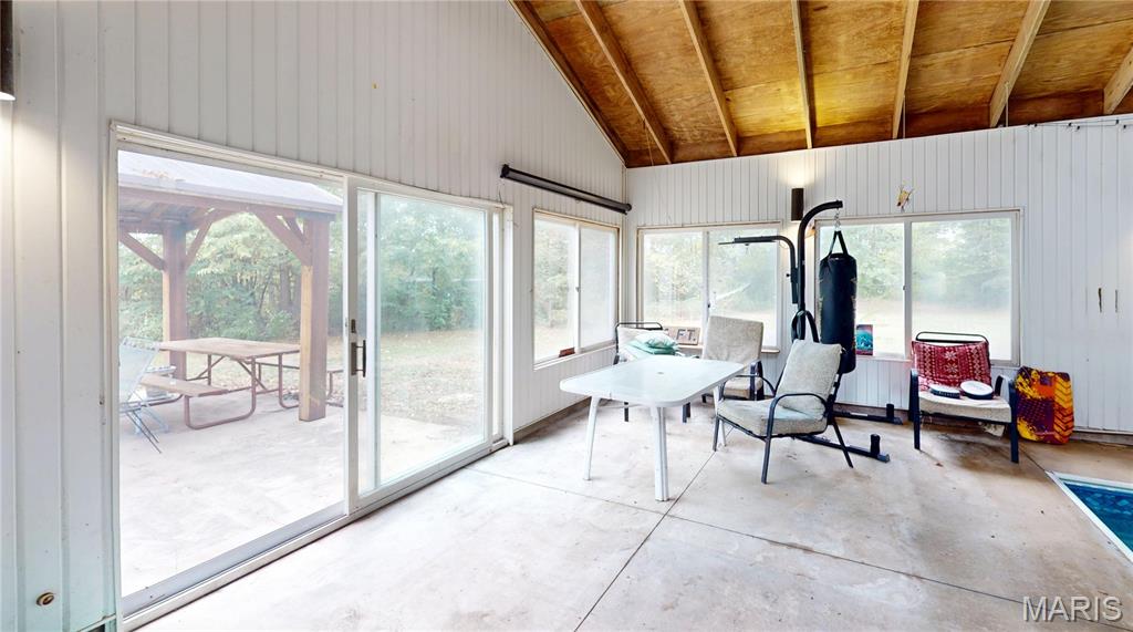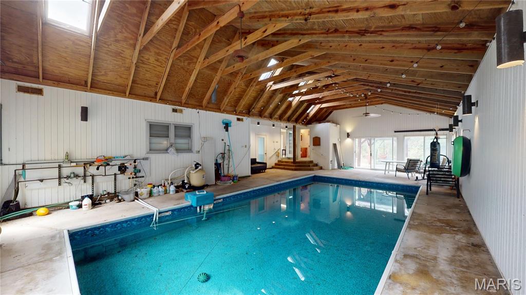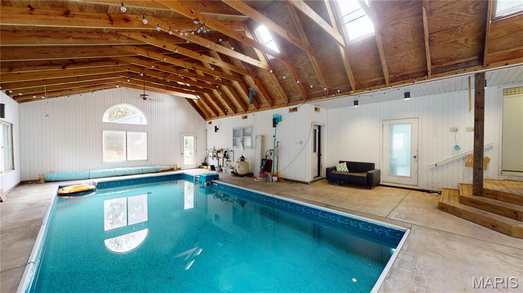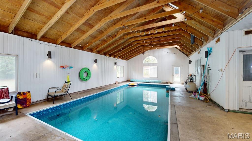 Looking for space, character, & a little bit of quirky charm? This 3 bed, 2 bath ranch sits on 2.6 acres in the country & is packed with potential. You’ll love the oversized 2-car garage PLUS a 34x60 pole building—room for all your toys, hobbies, or even the hobby farm you've been craving. RV owners, you’re covered too: 2 RV stations with electric & waste hookups right on the property. Inside, the home features a full unfinished basement & a large office space w/its own exterior entrance. Perfect for a home-based business, a guest suite, a family room—or even a 4th bedroom if you need it. Cozy up in the living room by the wood stove, then take your relaxation up a notch in the sauna. And did we mention the 31x15 INDOOR, in-ground pool? Heated by an exterior wood stove, it’s a conversation starter for sure and a year-round spot for fun & shenanigans. (Plus the spacious (1152 sq ft) pool room, featuring vaulted ceilings & skylights, is not included in the listed 1,790 finished living area of the home. Yes, the home could use some updates, but it’s solid, livable, & brimming with opportunity to make it your own forever home. The best part? It was recently appraised for $75,000 MORE than the asking price—so you’re walking into instant equity. Space, amenities, & value like this don’t hit the market every day. Whether you’re dreaming of a country retreat, a business base, or a property with room to grow, this one is worth a look. Come see all the possibilities waiting for you!