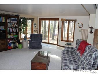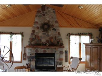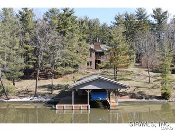 Gorgeous lakefront home nestled among the trees with 139' of lake frontage. Exterior cedar siding, wood floors, stone fireplaces, cathedral ceilings, 2 skylights, 6 panel wood doors throughout, screened porch and patio. Covered boat dock with 1 slip, automatic lift and ice eater. Basement includes a kitchenette, dining area, rec room, fireplace, 2 bedrooms, full bath and large storage room. All floor rugs negotiable. Main floor appliances stay. Basement appliances negotiable. All window coverings stay.