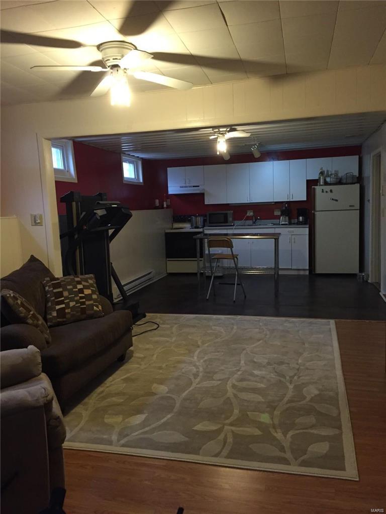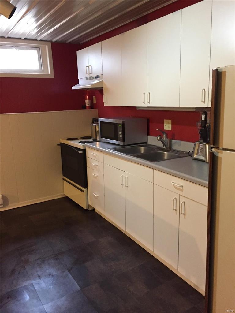 Modern and homey 4 bedroom house with lots of room to grow. Formerly a church, this home has been remodeled as a four bedroom 2 bathroom residence featuring an open plan kitchen/living dining room with original wood floors and moldings. Plus the finished basement adds an additional kitchen (with it's own stove and refrigerator), family room, den, man-cave, storage area and 2 extra bathrooms. Basement has a separate outside entrance, separate water heater, and separate (baseboard) heat from the main floor.This property includes a large lot next to the house with mature trees, a garden area, and plenty of room for a garage if you want one. Close to Greenville College, parks and pool, this well-kept house is a must see!