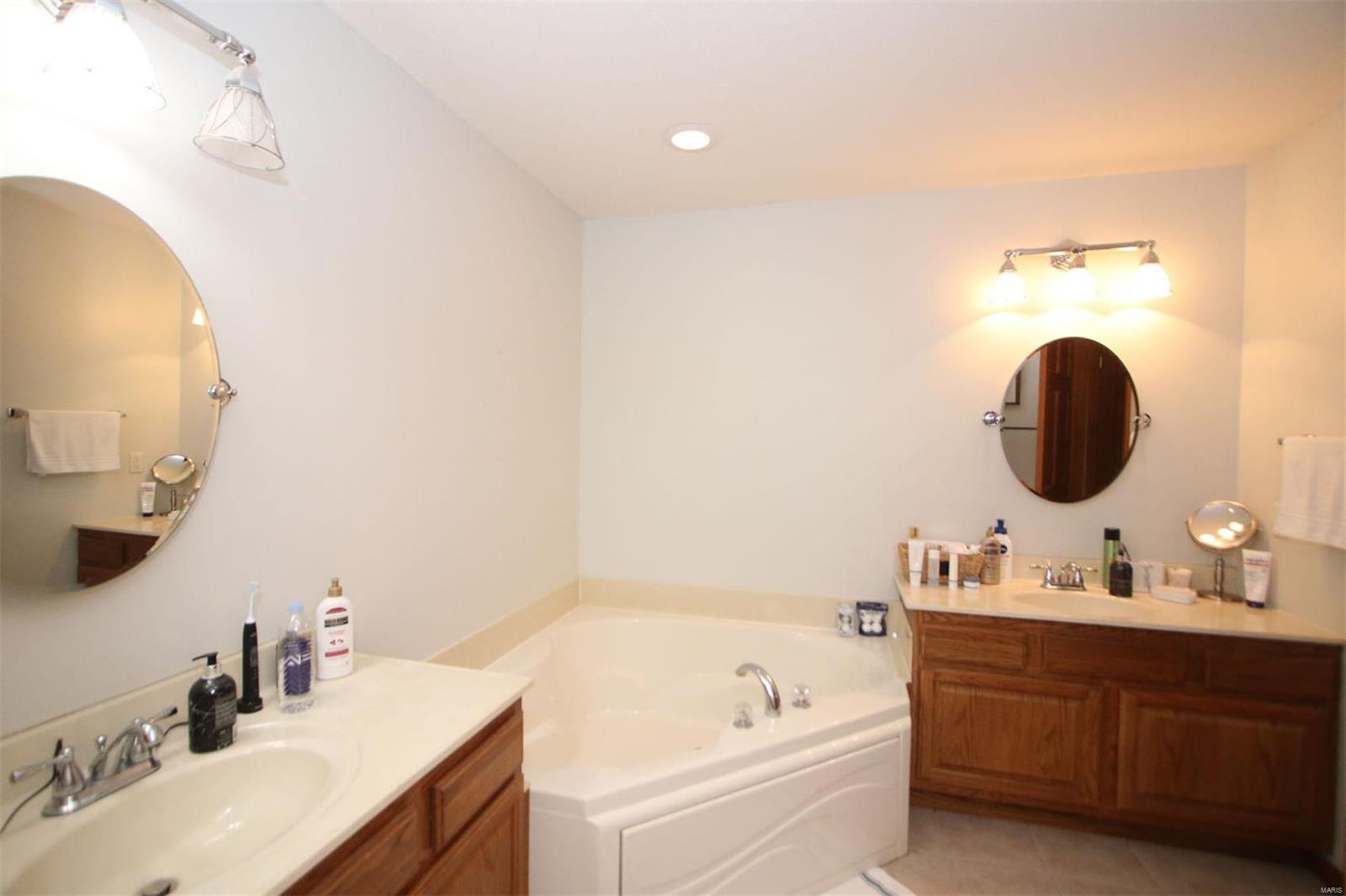 DUPLEX: All main floor living in this beautiful 1/2 duplex. Updated kitchen w/ granite counters, baths, hardwoods & ceramic tile throughout main floor. This home boasts deluxe master suite with separate tub & shower, dual vanities, walkin closet. There is main floor laundry, 2 car garage, slider to patio off dining room. Partially finished basement with addiltional bedroom with egress window, full bath & family room. The living spaces are roomy and there is lots of storage. This duplex sits on good size lot and backyard setting feels private. This is the first time this property is being offered as separate 1/2 duplex unit. See survey in photos for new parcel lines. Taxes on listing are currently for both units combined. Buyer and buyer agent are responsible to verify all data and measurements.