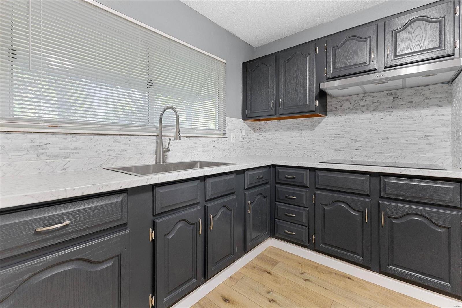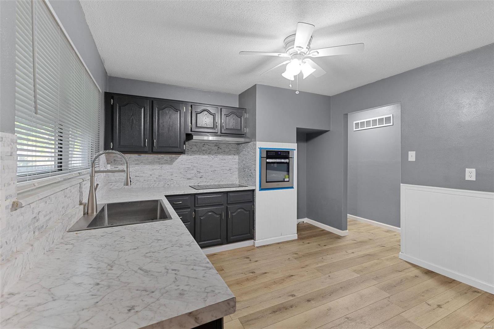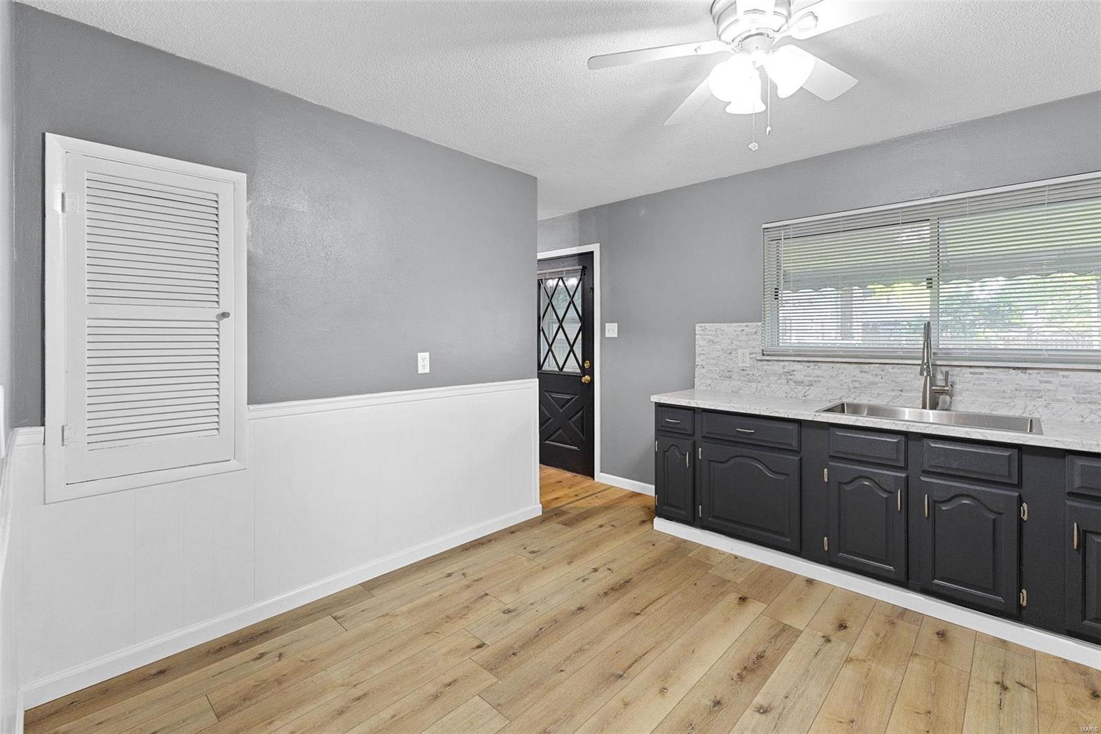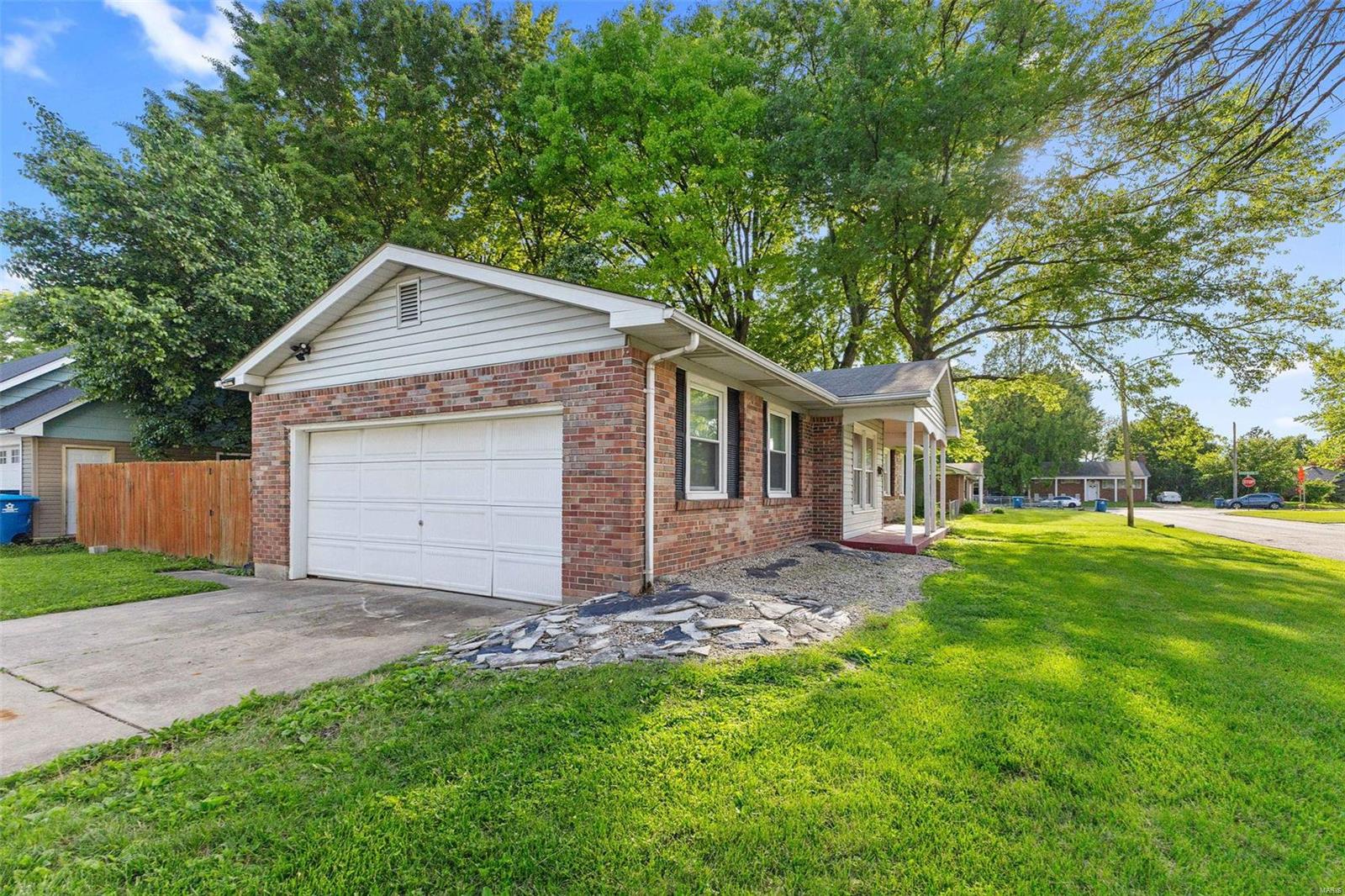 CHARMING THREE BEDROOM TWO BATH BRICK RANCH IN MOST CONVENIENT LOCATION. CORNER LOT WITH PRIVACY FENCED YARD. INTERIOR ALL RECENTLY PAINTED IN NEUTRAL TONES. UPON ENTERING YOU WILL BE WELCOMED BY THE SPACIOUS ENTRYWAY WITH SKYLIGHT. LEADS TO HUGE LIVING/DINING ROOM. **NEW LUXURY PLANK VINYL THROUGHOUT.** NEW SIX PANEL INTERIOR DOORS WITH NEW WHITE TRIM. PRIMARY BATH WITH SHOWER HAS BEEN UPDATED W/NEW CERAMIC FLOOR. MAIN BATH HAS FRESH NEW LOOK W/NEW VANITY & SINK AND NEW TILE FLOOR. KITCHEN HAS BEEN UPDATED WITH FRESHLY PAINTED CABINETS, NEW COUNTERTOPS AND BACKSPLASH. ALSO HAS NEW ELECTRIC COOKTOP AND NEW BUILT-IN OVEN. PANTRY. WHITE BEAD-BOARD WAINSCOTING ADORNS THIS AWESOME EAT-IN KITCHEN. NEW BLINDS THROUGHOUT. 2 CAR ATTACHED GARAGE WITH BACK DOOR ENTRY. FULL BASEMENT HAS PLENTY OF STORAGE AND RECROOM AREA. LOADS OF STORAGE SHELVES. SELLERS IN PROCESS OF COMPLETING MINOR REPAIRS. NEW SUMP PUMP. WILL PASS CITY FOR OCCUPANCY. MUST SEE TO APPRECIATE!!